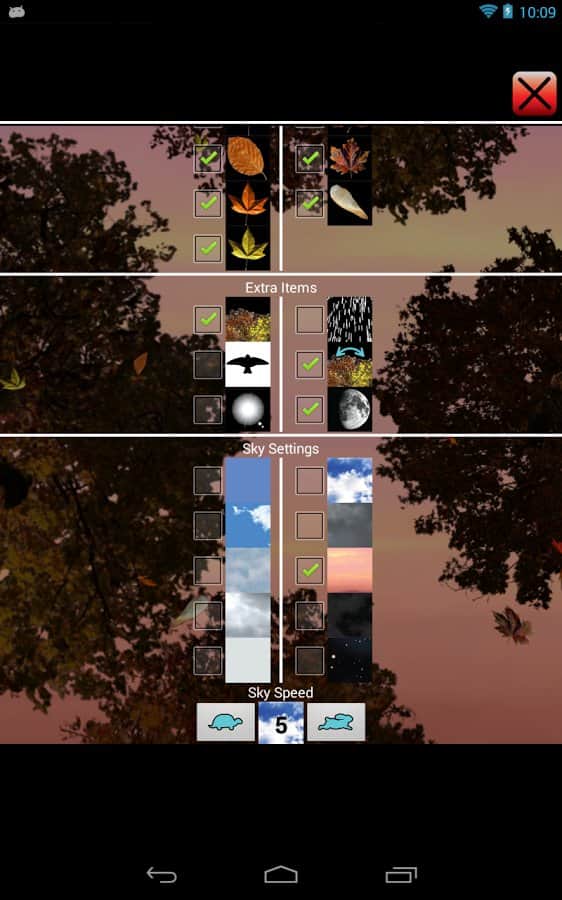 • Tüm ayarları (ekstra yaprak stilleri, gece ve gün doğumu) açma imkanı, aynı anda 100 yaprağa kadar gösterme.
