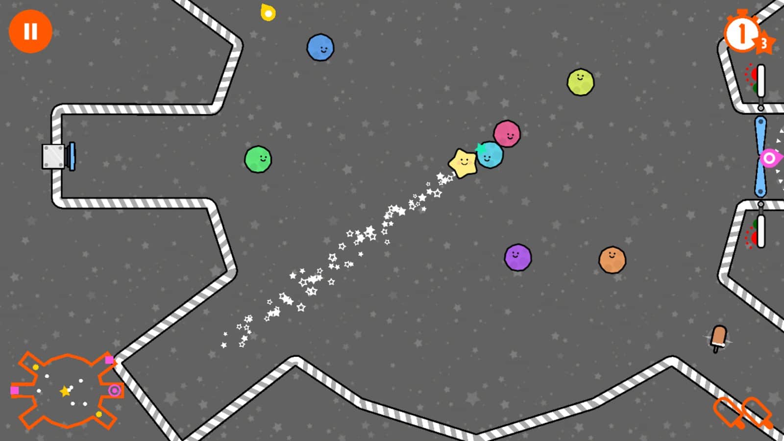 Küçük Kuyruklu Yıldız – Android için harika bir mini golf oyunu, fiziğin yasalarına dayanmaktadır. Bu oyunda, güneş sisteminde seyahat eden küçük bir kuyruklu yıldızı yöneteceksiniz ve güneşe ulaşmaya çalışacaksınız. Yolculuğunuzda birçok farklı gezegenle, çeşitli arkadaşlarla karşılaşacak ve mümkün olduğunca çok şeker toplayacaksınız. Uzayda uçun ve ilerlemek için farklı gezegenlerin yerçekimsel alanını kullanın. Oyunun çeşitli görevlerini yerine getirin ve daha fazla seviye açmanızı sağlayacak yıldızları toplamayı unutmayın. Bu oyunu oynayın ve heyecan verici oyun sürecinin tadını çıkarın.