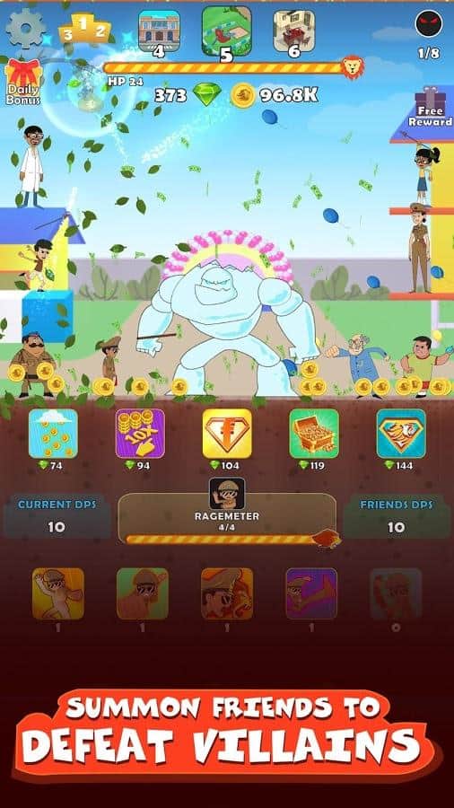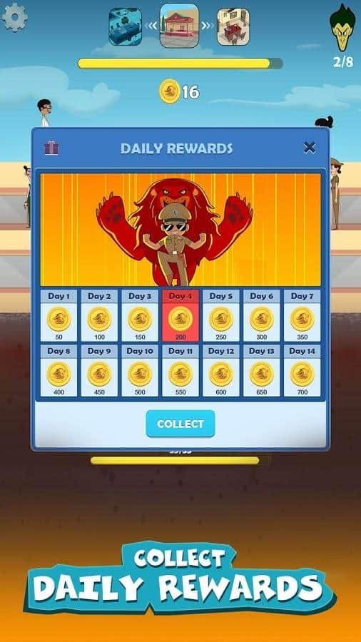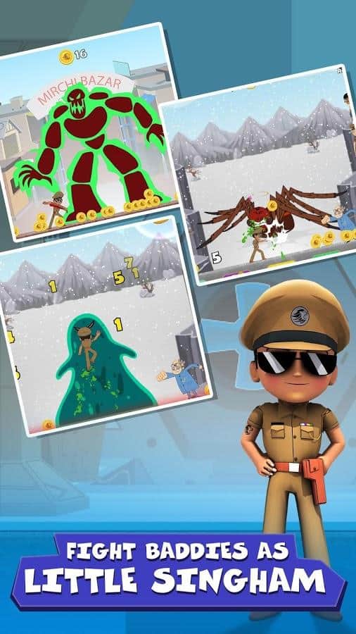 Küçük Singham Tap – Android için heyecan verici bir aksiyon oyunu, burada küçük Singham'a tüm düşmanları yenmesine yardımcı olacaksınız. Sayısız ve tehlikeli canavarlara karşı savaşa katılın ve Mirchi Nagari'yi kurtarın. Kendi arkadaşlarınızdan oluşan bir ekip oluşturun ve canavarlara karşı savaşarak şehrin farklı bölgelerinde tehlikeli bir yolculuğa çıkın. Epik bir savaşa hazırlanın ve kötülüğe karşı zafer kazanın. Canavarlara karşı ekip üyelerinizin her birinin benzersiz yeteneklerini ve becerilerini kullanın ve onları yavaş yavaş geliştirin. 1000'den fazla eşsiz seviyeyi geçin ve otomatik savaşların tadını çıkarın.