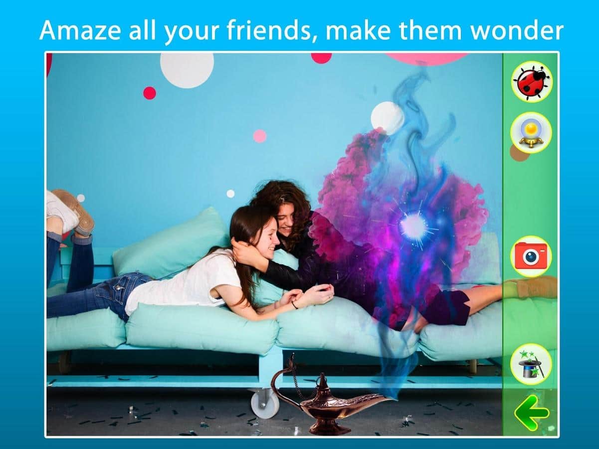 LittleBig LadyBug Foto – Android için harika bir uygulama, burada fotoğraflarınızı düzenleyebilirsiniz. Eğer fotoğraf çekmeyi ve arkadaşlarınızı çeşitli fotoğraflarla şaşırtmayı seviyorsanız, bu uygulama sizin için yaratıldı. Gerçek zamanlı olarak sayısız efekt, hayvanlar, sihir, büyülü efektler ve dinozorlarla yüzlerce farklı fotoğraf oluşturabilirsiniz. Hayal gücünüzü ve hayal gücünüzü kullanarak düzenleyebileceğiniz benzersiz fotoğraflar yaratın. Uygulama, her gün kullanabileceğiniz basit ve anlaşılır bir arayüz ile sizi memnun edecek.