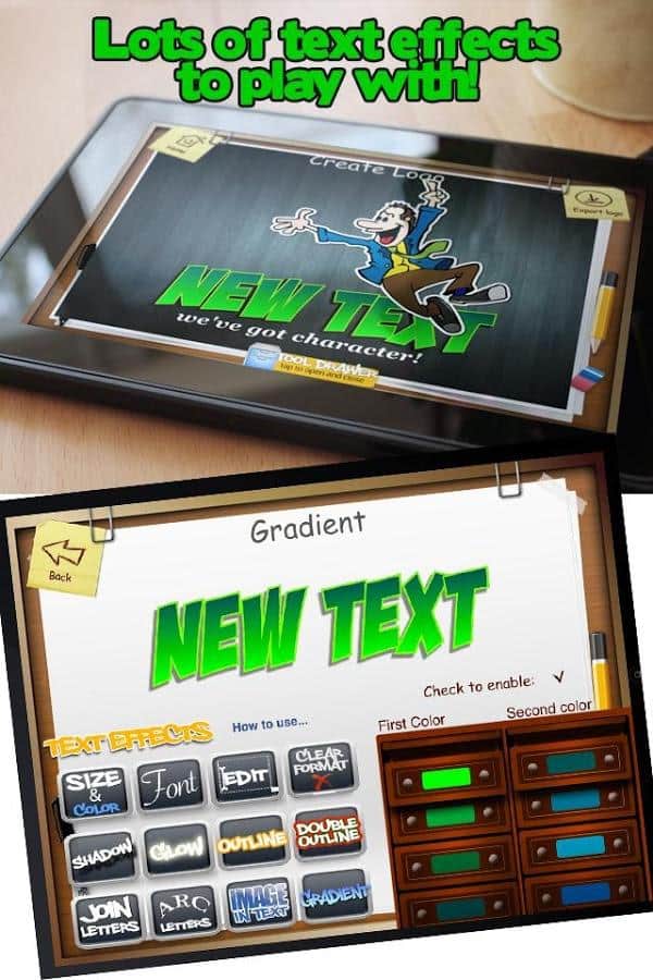 Logo Yapıcı – kendi logolarınızı, grafiklerinizi ve çizimlerinizi Android cihazınızda oluşturmak için iyi bir uygulama. Geliştirici Laughingbird Software, birçok font, ikon, çeşitli karakterler ve 30'dan fazla şablon sunmaktadır. Kısacası, kendi projenizi oluşturmak için yaratıcı bir şekilde uçabilmeniz için gereken her şey burada.