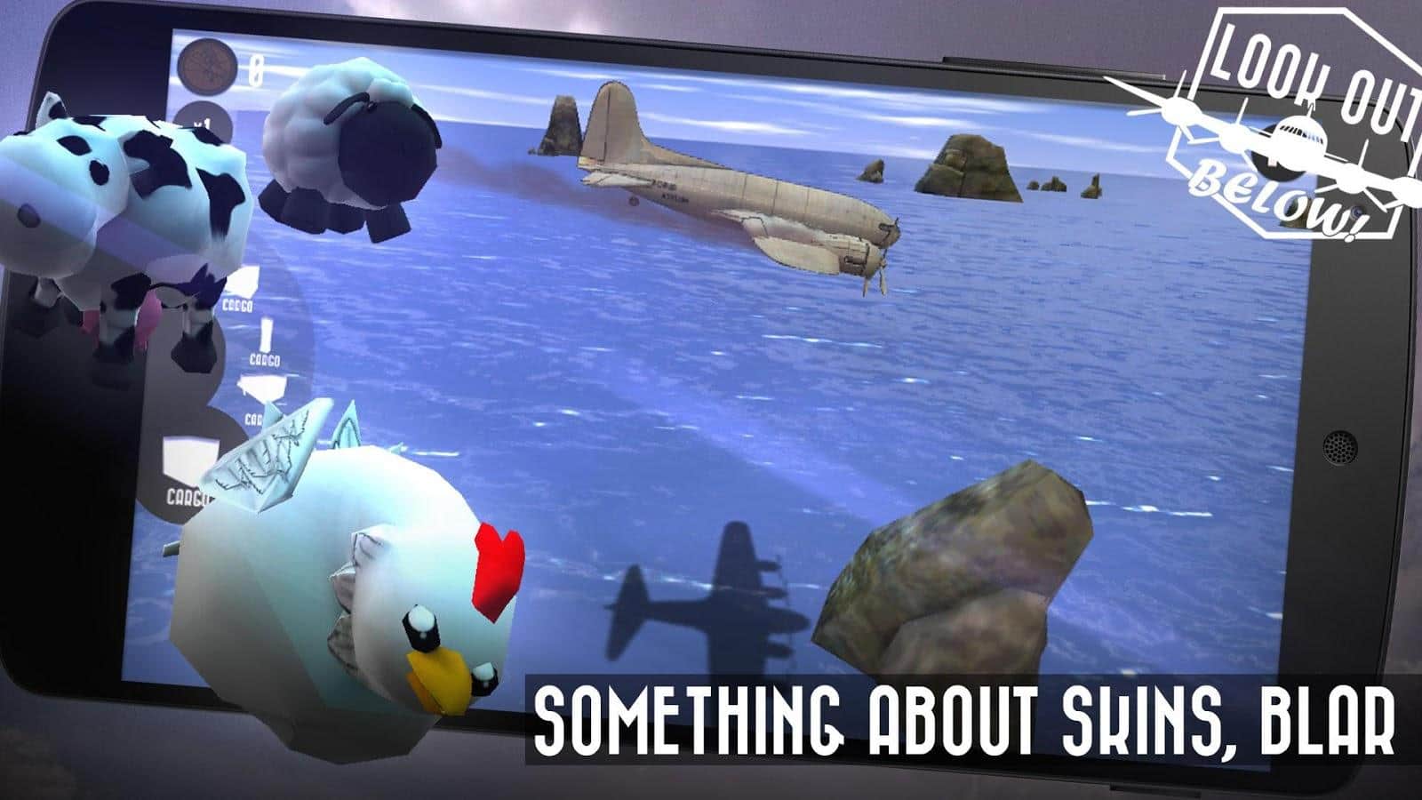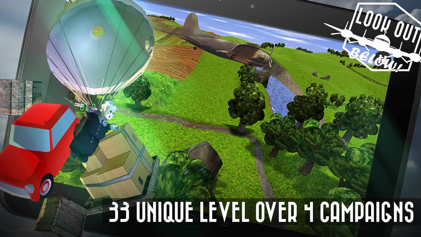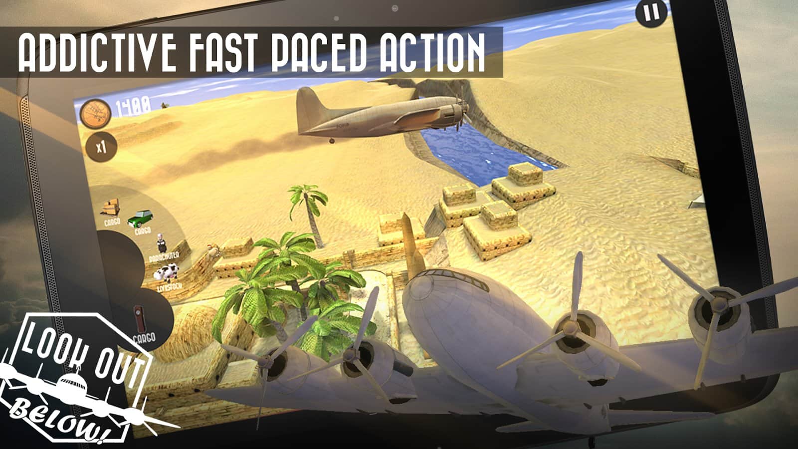 Dikkat Aşağıda! Android'de oynanan bir oyunda bir yük uçağını yönetip, savaş zamanında çeşitli yükler bırakacaksınız. Oyunda çok sayıda çeşitli yük, birkaç mekan ve farklı zorluk seviyeleri bulunmaktadır.