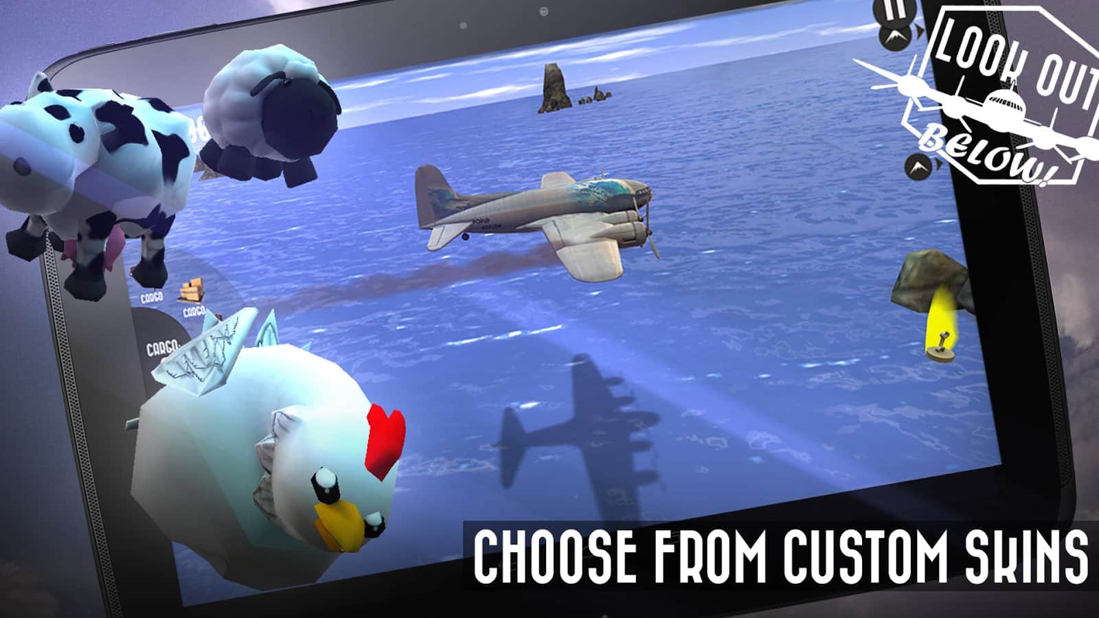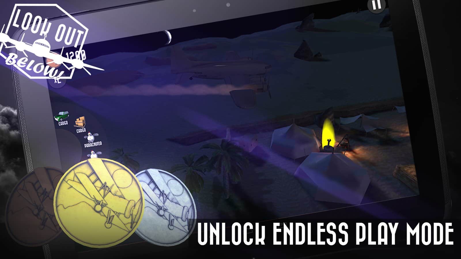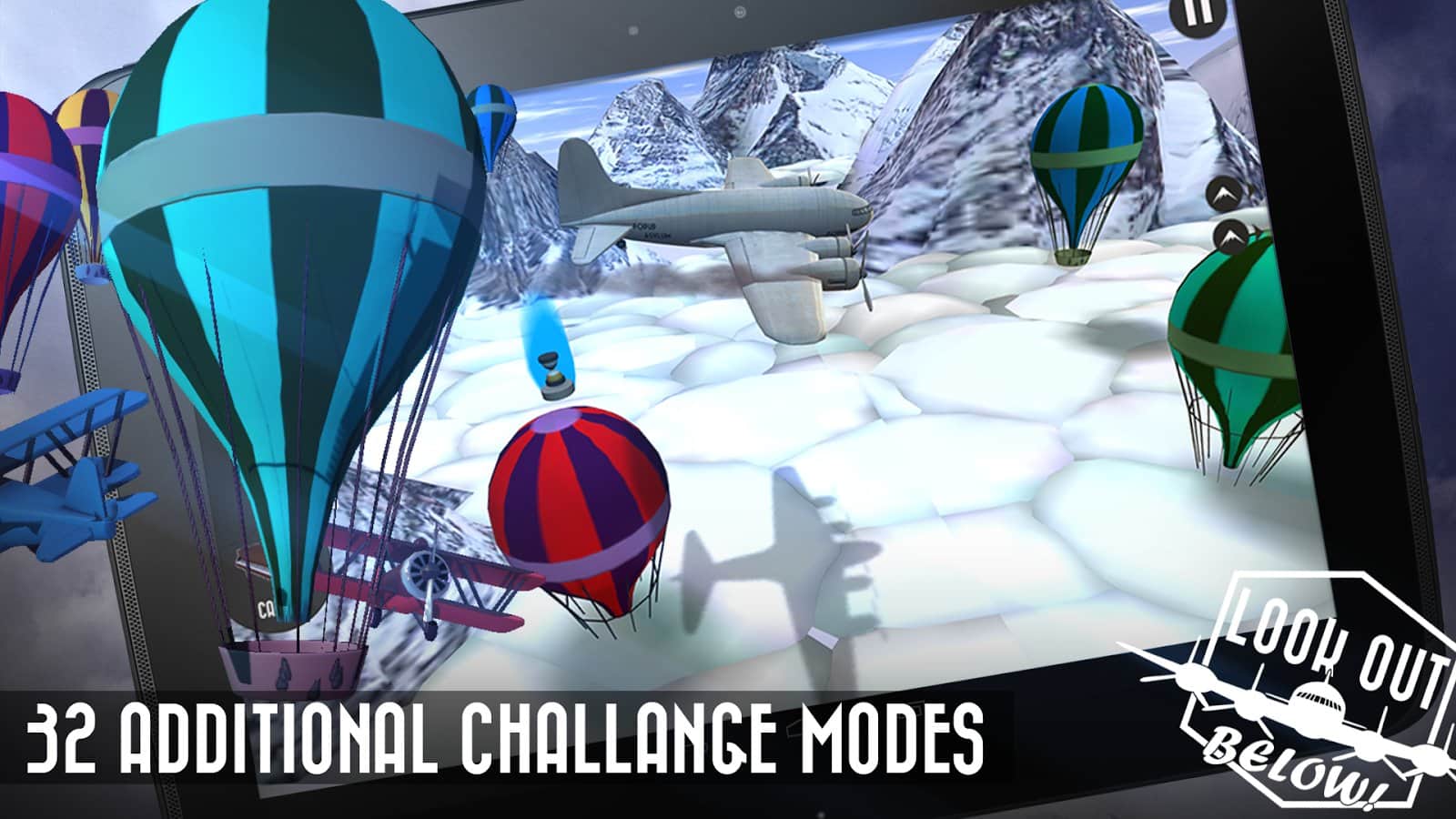 Dikkat Aşağıda! Android'de oynanan bir oyunda bir yük uçağını yönetip, savaş zamanında çeşitli yükler bırakacaksınız. Oyunda çok sayıda çeşitli yük, birkaç mekan ve farklı zorluk seviyeleri bulunmaktadır.
