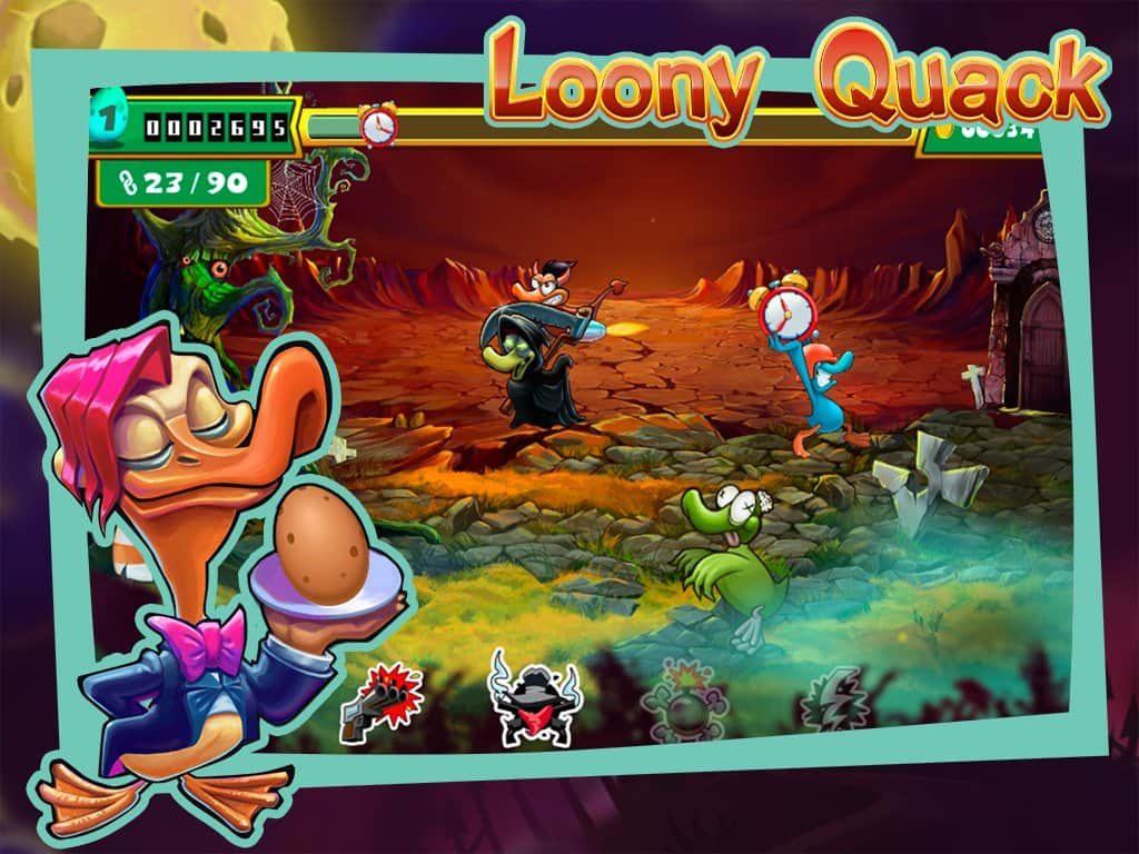 Loony Quack – Android için bir nişancı oyunu, burada zombi ördekleri yok edeceksiniz. Bu oyunda, şehirlerin sokaklarında dolaşan zombi ördekler ve tehlikeli canavarlarla dolu çılgın bir dünyaya gireceksiniz. Göreviniz, büyük miktarda yumurta ile donanarak düşmanlarınıza atış yapmak ve böylece onları yok etmek. Yumurtaları, uçuş yollarını tam olarak hesaplayarak atın ve hedefleri teker teker yok edin. Son derece dikkatli olun ve ekranda farklı hareket hızlarına sahip olan ördekleri izleyin. Yeterli puan toplayın ve daha modern bir silaha erişim kazanın, bu da daha fazla düşmanı yok etmenizi sağlayacaktır.
