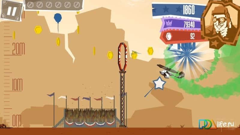 Dönme Dolaş – küçük bir uçağı kontrol altına alın ve hava gösterisine katılın. Bu oyun sizi 30'lu yıllara götürecek, burada bir spor uçağının pilotu rolünü üstleneceksiniz. Uçağın kokpitine oturun ve baş döndürücü numaralar ve ölü döngüler yaparak izleyicilerin alkışları eşliğinde gösteri yapın. Oyun, oyunculara basit ve anlaşılır bir kontrol sunacak; telefonunuzun veya tabletinizin ekranına dokunduğunuzda uçağınız ölü döngü yapacak, bıraktığınızda ise tüm manevralar duracak. Uçağın hareket yönünü değiştirin ve uçağınızın engellere çarpmaması, tüm paraları toplaması ve yere çarpmaması için elinizden geleni yapın.