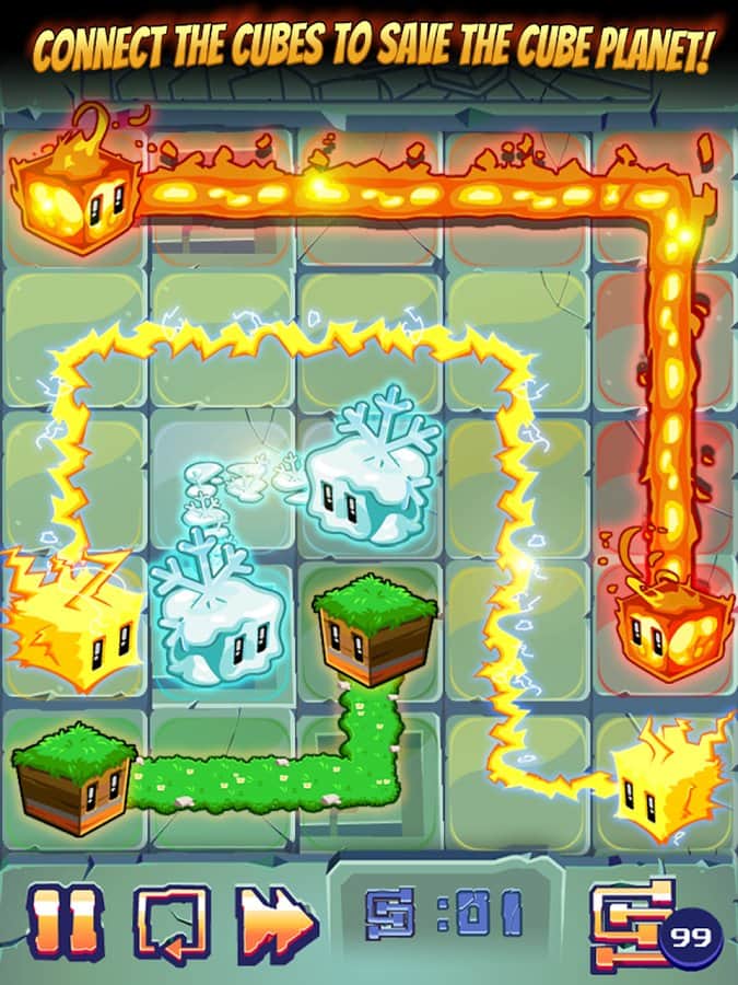 Kayıp Küpler - bu Android bulmacası - harika bir zaman öldürücü, iyi yapılmış ve oyun deneyimi açısından keyifli. Temel kural şu - alanda çeşitli unsurların görüntüsüne sahip çift küpler bulunmaktadır - ateş, su, lav, rüzgar vb. Göreviniz, bir küpten eşine doğru sadece dik açıyla kırılabilen bir çizgi çekmektir. Ayrıca, alanda hiç boş kare kalmaması gerektiğini unutmayın. Kendi başınıza başarmak zor olursa, her zaman ipucu yardımı alabilirsiniz. Ve daha da önemlisi - ne kadar iyi ve ipucu kullanmadan geçerseniz, o kadar çok yıldız kazanırsınız. Birçok dünya ve seviye - harika bir zaman geçirme yolu!