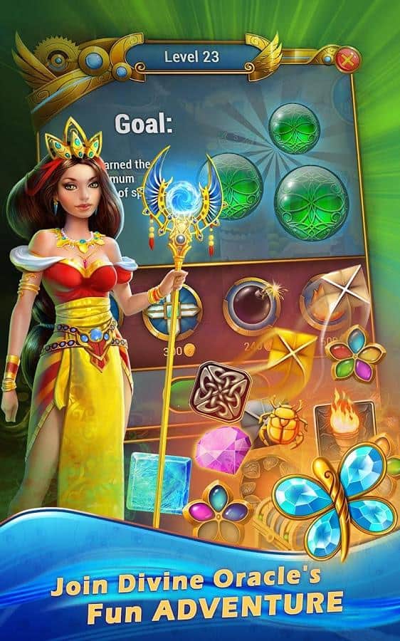 Kayıp Mücevherler - Eşleştir 3 Bulmaca - Android'de kaybolmuş hazineyi bulmak için bir orakulla birlikte zorlu engelleri aşarak heyecan verici bir bulmacaya dalın. Sizi dinamik oyun deneyimi ve muhteşem efektlerle dolu gerçek bir epik yolculuk bekliyor. Aynı renkteki değerli taşları birleştirin, sihirli tılsımların tüm potansiyelini açığa çıkarın, hazine sandıklarını toplayın.