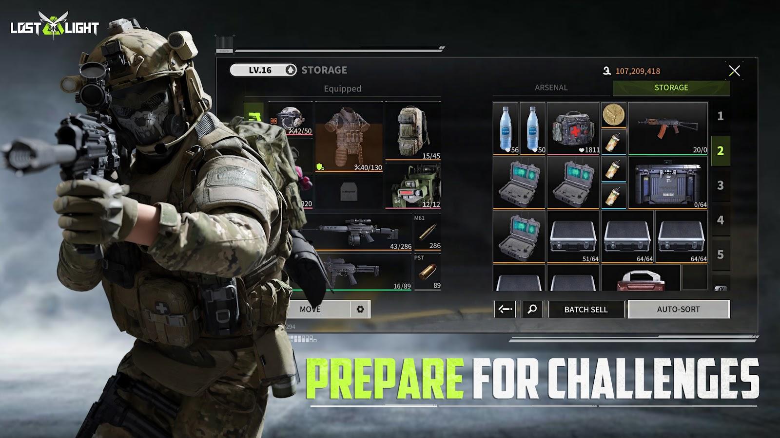 Lost Light dünyasında "yüksek risk - yüksek kazanç" kuralı geçerlidir. Ya malzeme aramak için gizlice ilerleyebilir ya da ateşli silahlarla çıkıp diğer oyuncuları soğuk kanlı bir şekilde soyabilirsiniz. Güçlenmek ve düşmanları bastırmak için geliştirme ve takas da önemlidir. İster dişinizle tırnağınıza kadar silahlanmayı, ister hafif bir şekilde yola çıkmayı seçin, her maç hayatınızı ortaya koyduğunuz bir oyundur. Dişinizle tırnağınıza kadar silahlanıp kaos yaratabilir ve ganimetinizi güvence altına alabilirsiniz, YA DA minimalist bir yaklaşım benimseyip küçük bir servet kazanmaya çalışabilirsiniz. Ama unutmayın, eğer savaşta ölürseniz her şeyi kaybedersiniz - ganimetleriniz, sağ çıkmadığınız sürece sizin olmayacak.