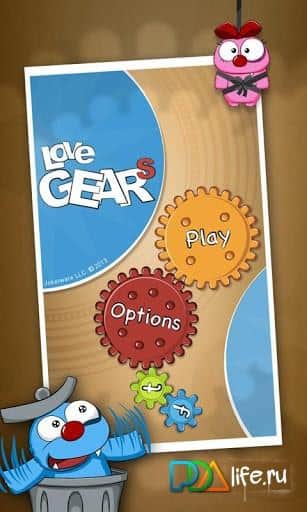 Aşk Dişlileri - aşk temalı bir bulmaca - küçük bir canavar çok sevdiğiyle buluşmak istiyor, ama bu o kadar da kolay değil - o bir çöp kutusunda, o ise yukarıda asılı. Ve iki aşığa yardımcı olabilecek tek şey dişliler. Eğer onları doğru yerleştirirseniz, sevdiği kahramanına doğru inebilir. Ama bu kolay değil - bunu minimum hamle ile yapmalısınız, o zaman seviyeyi geçme puanınız maksimum olacaktır! 54 çeşitli oyun tarzında seviye - belirli yerlere küçük dişliler eklemek beyninize iş yükü ekliyor! Karakterler o kadar sevimli ki, onlara yardım etmek ve mutluluklarını paylaşmak istiyorsunuz!