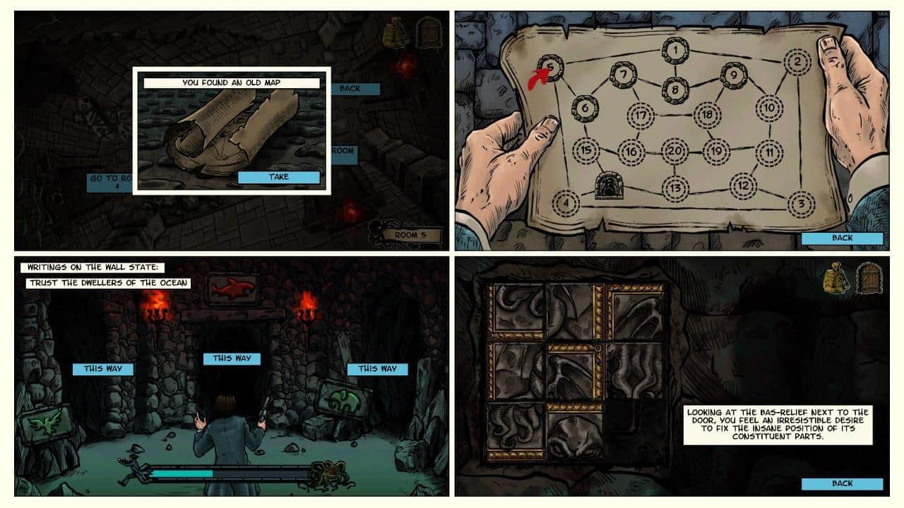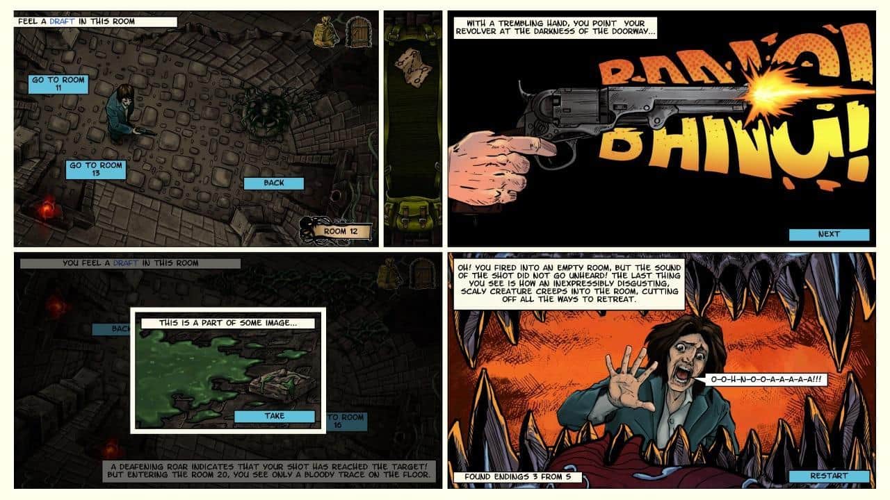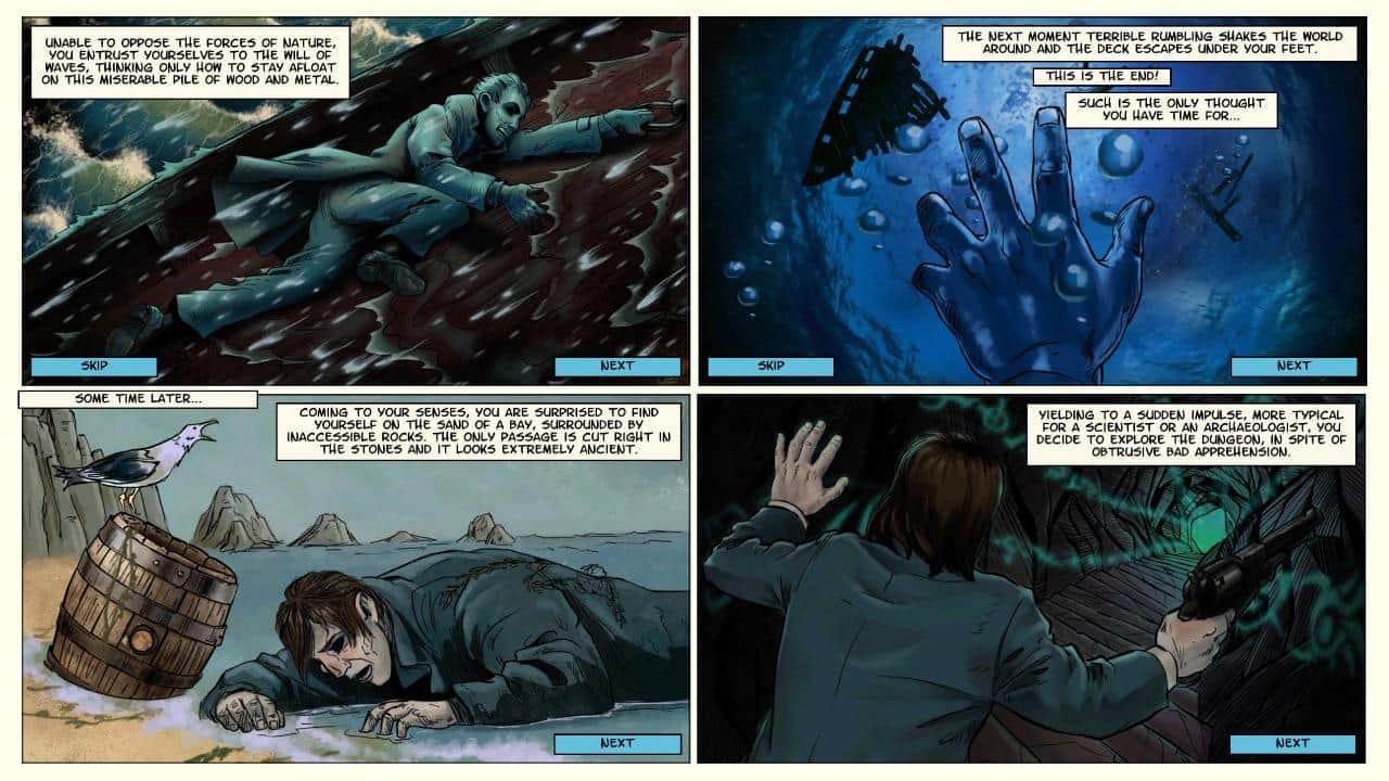 Lovecraft Quest - Bir Komik Oyun - macera oyunu, rol yapma, komik ve etkileşimli komik unsurlarını bir araya getiriyor. Oyunun hikayesi, ünlü korku yazarı Howard Phillips Lovecraft'ın eserlerine dayanmaktadır. Bu nedenle, gizemli bir tapınakta tehlikeli bir yolculuğa çıkacak ve tüm bulmacaları ve sırları çözmeye çalışırken korkunç canavarlara yakalanmamaya çalışacaksınız. Hikayenin gelişimi, eylemleriniz ve aldığınız kararlara bağlı olacaktır.