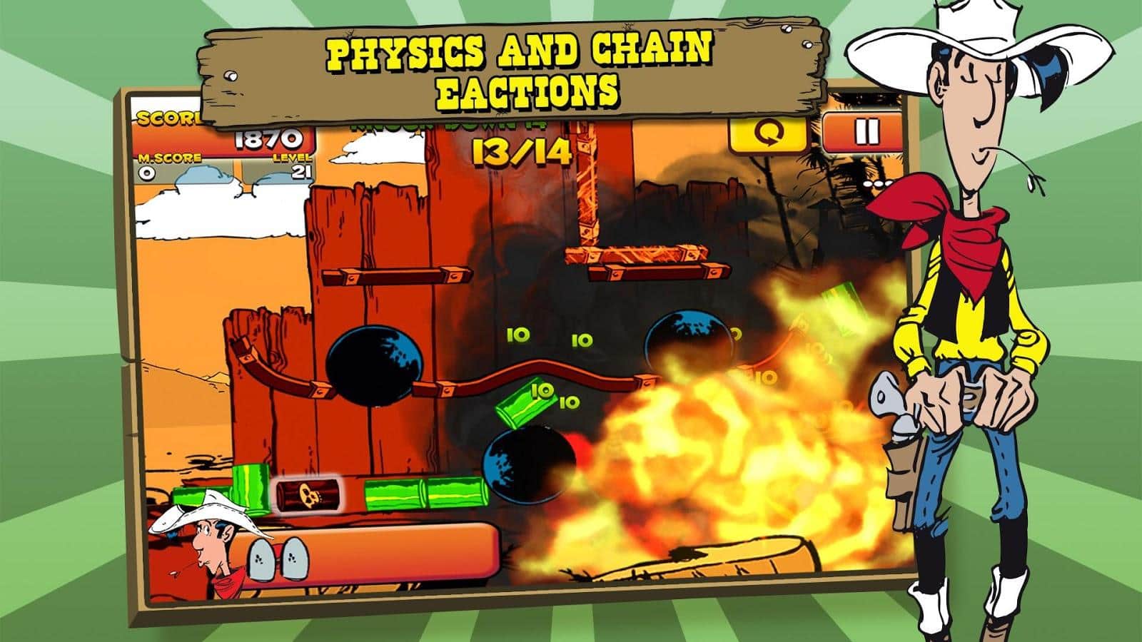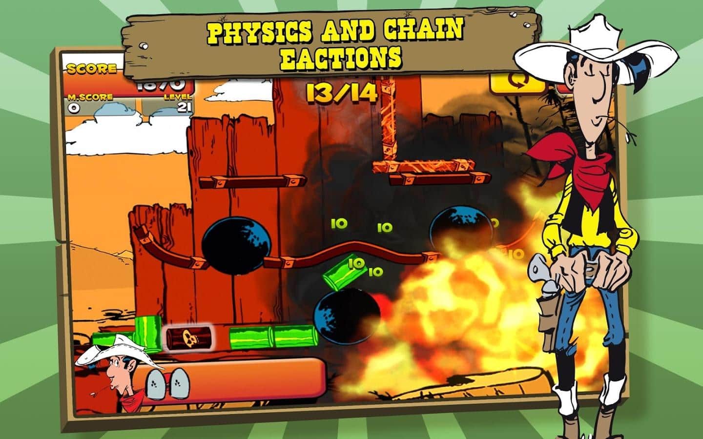 Şanslı Luke Vur & Vur - Batı'nın en iyi nişancısı olduğunuzu kanıtlayın! Fizik ve zincirleme tepkilere dayanan bu zorlu oyunda yüzlerce seviyeyi geçin. Bu oyunda hassasiyetiniz ve mantığınız size yardımcı olacak! Hedefleri vurmak için nişan alın, ancak mühimmatınıza dikkat edin: çünkü sınırlıdır. Harika çizgi film grafiği ve hoş müzik çözümü bu oyunu tamamlayacak.