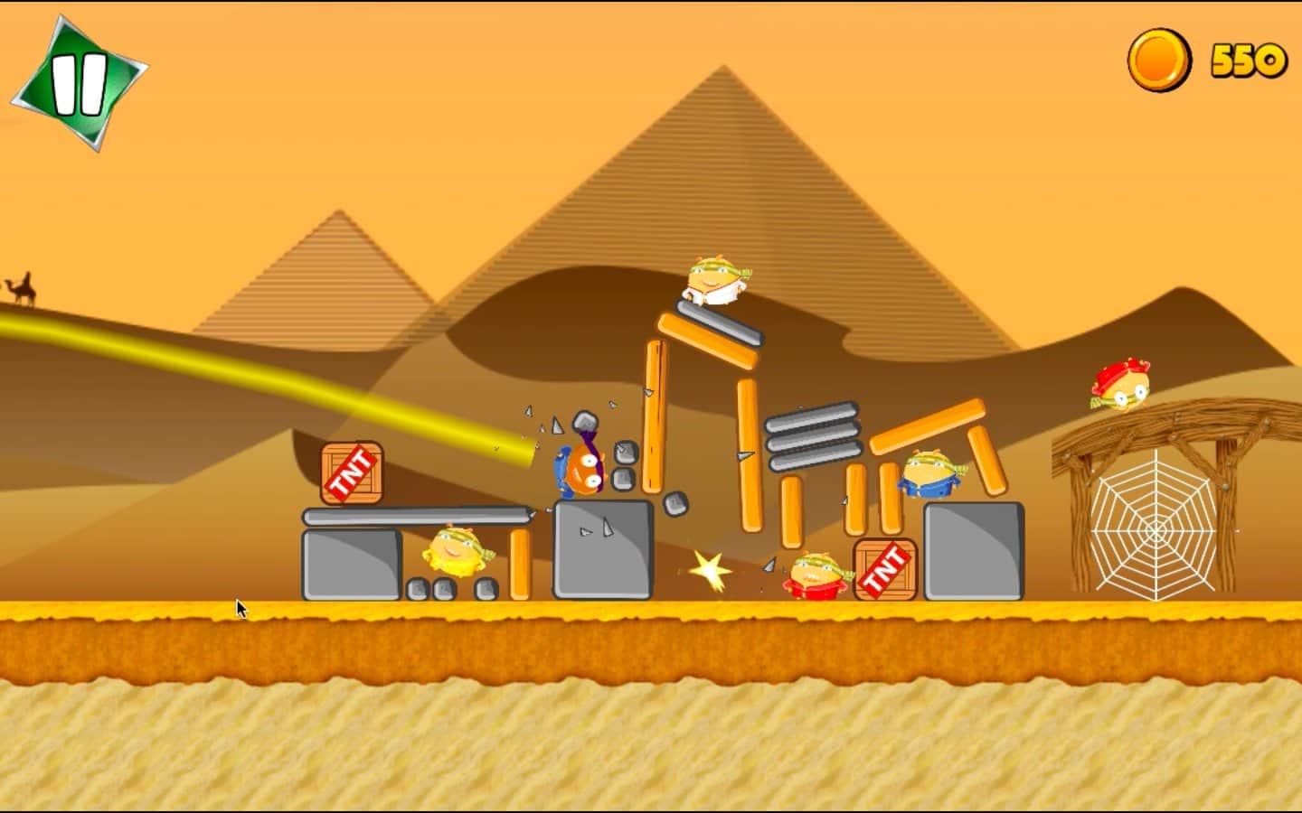 Şanslı sapan – kötü ninja – ünlü "Öfkeli kuşlar" oyununa bir parodi. Bizim bir sapanımız var, diğer insanlara fırlatacağımız küçük insan figürlerimiz var. Bu figürler çeşitli yapılar içinde saklanmış. Klan savaşları uzun zamandır devam ediyor. Her klanın kendi düşmanlarını yok edebilen ninjaları var. Kılıçlı, bomba, çakra, yıldız, bıçaklı ninja çeşitleri mevcut. Ana savaşçı türlerinin yanı sıra efsanevi ninjalar da bulunmaktadır: Su, Ateş, Buz, Toprak, Taş, Manyetik ve daha birçok yetenekleri olan. İlginç bir oyun oyuncusunu bekliyor!