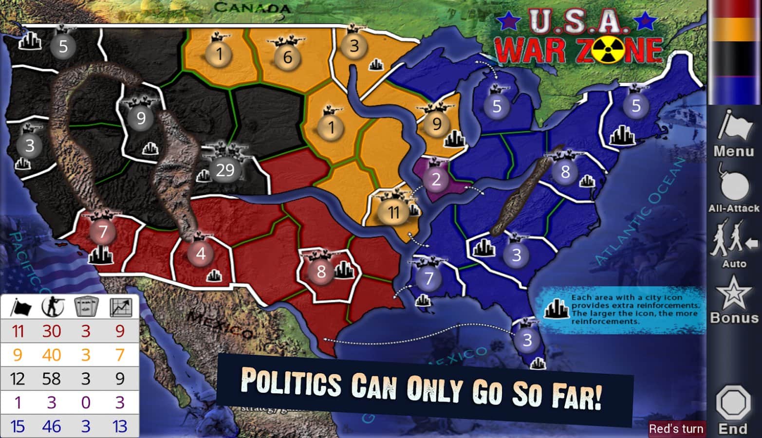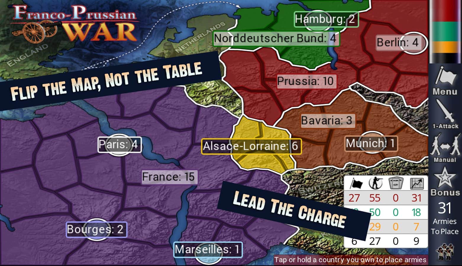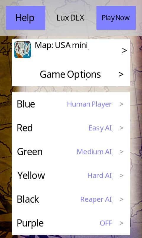 Lux DLX – adım adım eylemlerle bir strateji oyunu, burada tüm dünyayı fethetmeniz gerekecek. Bu oyunda karşınıza dünya haritası çıkacak ve tüm eylemler burada gerçekleşecek. Göreviniz, düşman bölgelerini fethetmek, çeşitli ülkeleri ele geçirmek ve gezegenin her yerinde nüfuz alanınızı genişletmek için belirlenen görevleri yerine getirmektir. Dünya fethetme stratejinizi geliştirin ve bilgisayar rakiplerine veya arkadaşlarınıza karşı oynayın. Bir bölgeyi diğerinin ardından fethedin ve başlıca yönetici olun. Bu oyunda, deneyimli bir stratejistin yeteneklerinizi ve becerilerinizi gerçek bir sınavdan geçirebileceğiniz yüzlerce farklı haritanın bulunduğu bir dünya ile karşılaşacaksınız.