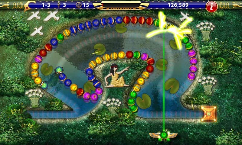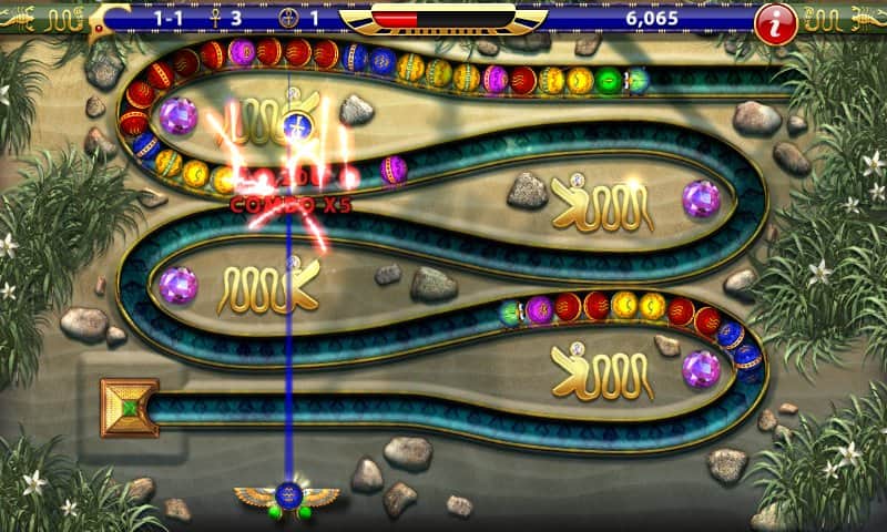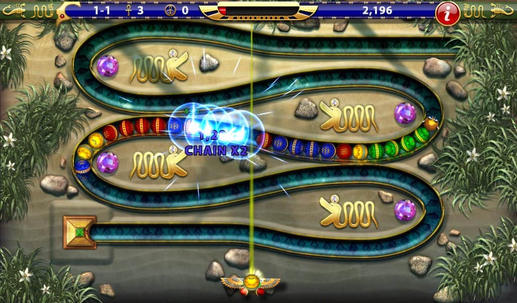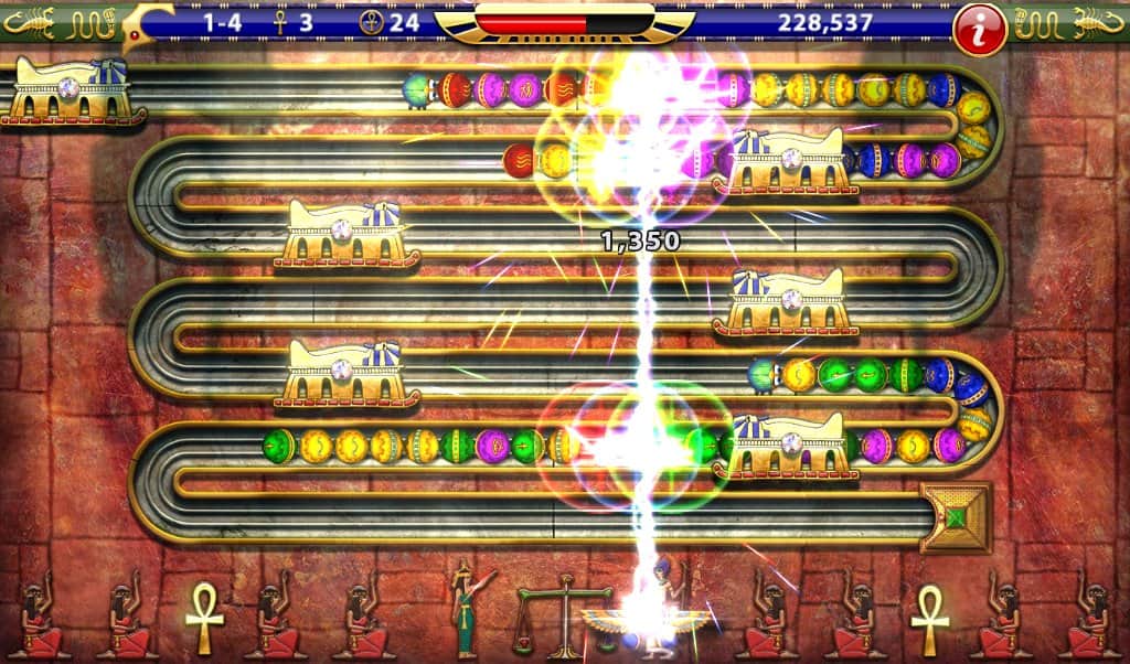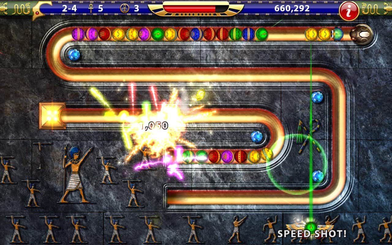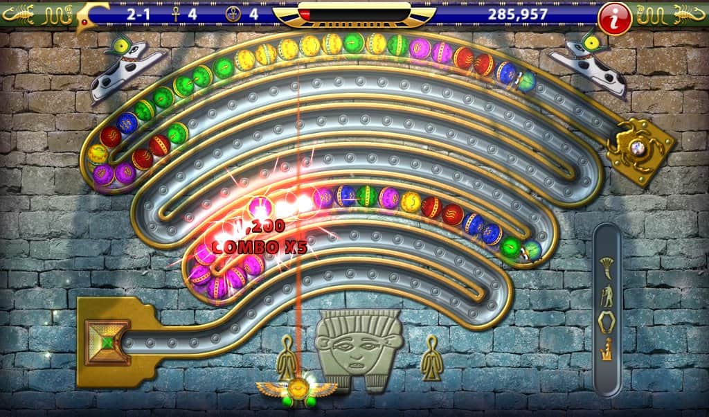 Luxor HD - Ünlü zoom tarzında bulmaca artık Android cihazlarınızda. Alanda farklı renklerde toplardan oluşan bir zincir var. Göreviniz, bu zincire 'yay' ile ateş etmek ve aynı renkten toplardan oluşan zincirler toplamaktır. Toplanan zincirler yanacak ve böylece tüm zinciri kısaltacaktır. Ana göreviniz topların piramidi geçmesine izin vermemektir. Oyun harika bir oynanışa ve güzel görsel efektlere sahiptir.