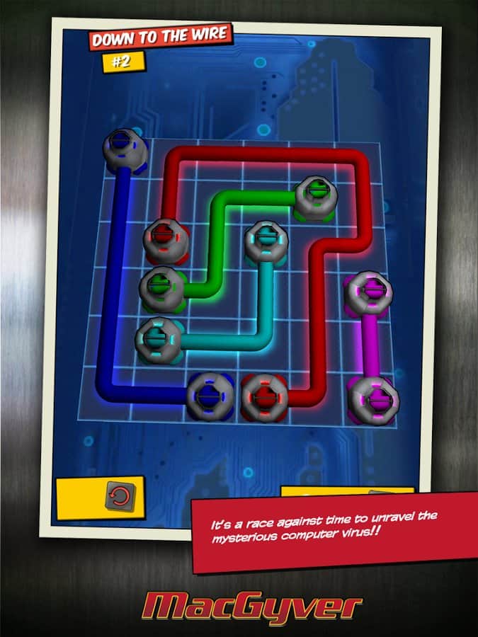 MacGyver Ölümcül İniş - ana karakteri 90'lı yılların dizisinden ünlü aktör MacGyver olan bir bulmaca oyunu. Laboratuvardaki tüm bilgisayarlara bulaşan bir bilgisayar virüsü, tüm bilim insanlarını yer altındaki gizli bir odaya çekiyor ve şimdi onların kurtuluşu için son umudunuz sizsiniz. Olay yerine gidin ve yer altına inerek karmaşık bulmacaları ve görevleri çözün. Oraya ulaşmak için mantığınızı, hafızanızı ve zekanızı test etmeniz gerekecek.
