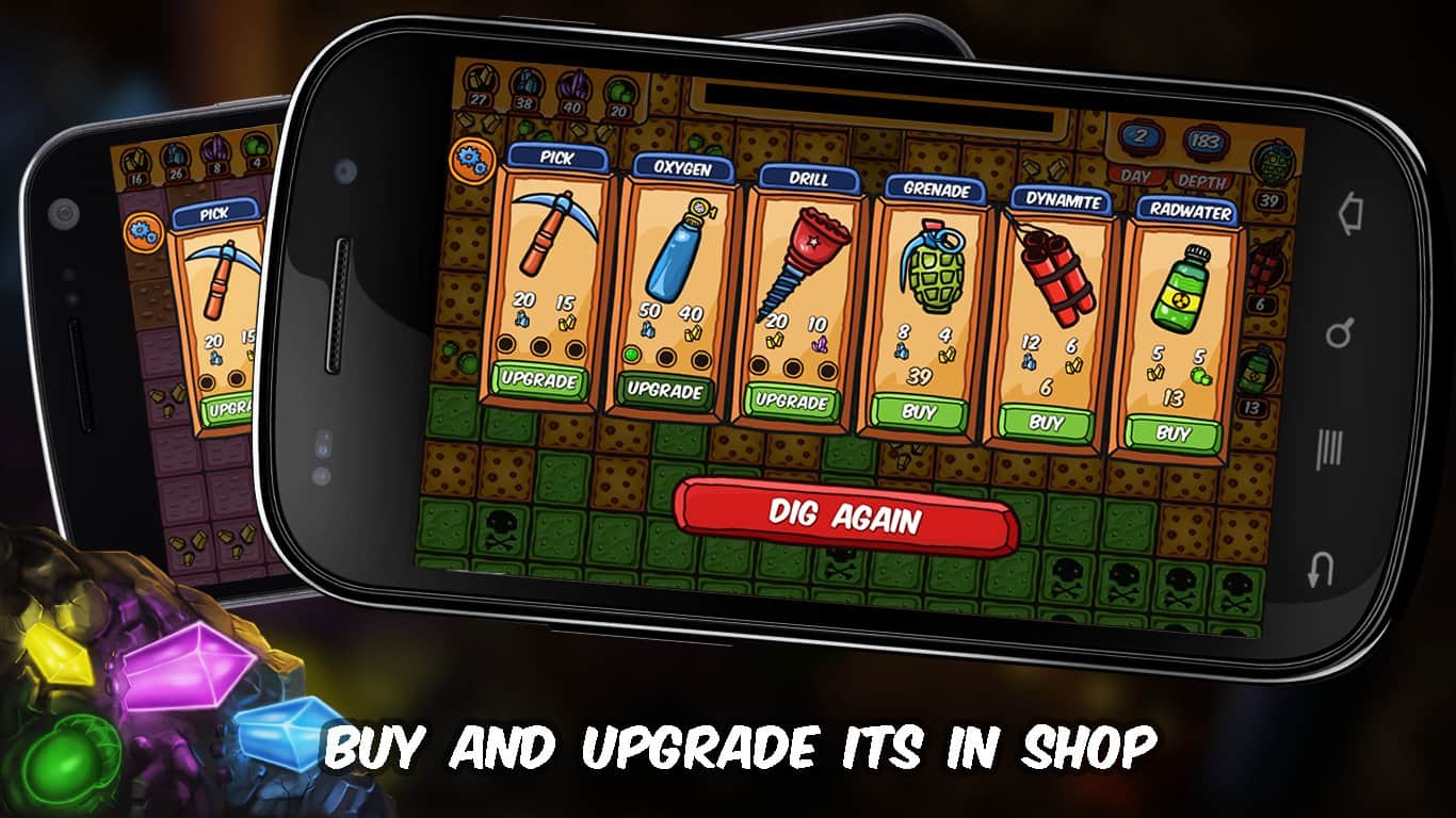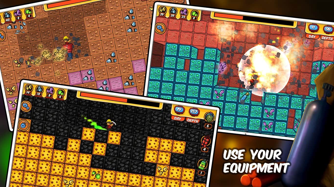 Çılgın Kazıcı – Android için ilgi çekici bir oyun, burada yalnız başına define aramaya karar veren çılgın bir kazıcıyı yöneteceksiniz. Kahramanımız terkedilmiş bir madende çok derinlerde gömülü bir define olduğu müjdesini aldı. Şimdi kahramanımız, hayalindeki defineye ulaşmak için kendi başına yola çıkmaya karar verdi, ona bu konuda yardım edin. Mümkün olduğunca hızlı bir şekilde yer altına inin ve havanız bitene kadar kazın, kazın ve kazın. Yolda, yeni ekipman ve çeşitli araçlar almak için işinize yarayacak faydalı madenleri toplamayı unutmayın; bu araçlar el bombaları ve dinamit gibi, hedefinize daha hızlı ulaşmanızı sağlayacak.