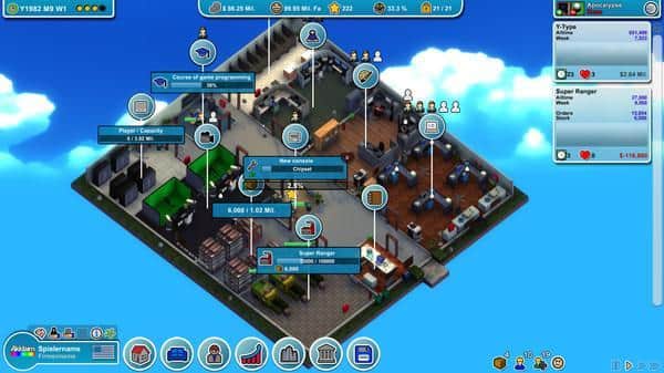 Çılgın Oyun Tycoon – kendi benzersiz oyun imparatorluğunuzu oluşturun. Olaylar 80'li yıllarda, küçük bir garajda geçiyor, az bir paranız ve sınırlı kaynaklarınız var, ancak büyük bir potansiyel mevcut. Yeni oyun konseptleri geliştirin, yeni teknolojiler uygulayın ve milyonları fethedecek hitler çıkarın. Küçük bir odadan devasa bir tanınmış geliştirme imparatorluğuna kadar ilerleyin. Yayıncılar ve iş adamlarıyla anlaşmalar yapın, yatırımcılar çekin ve imparatorluğunuzu geliştirin.