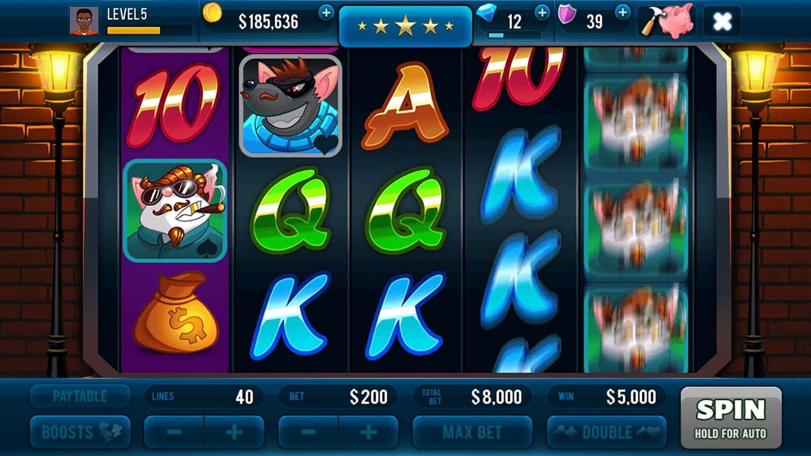 Mafioso Ücretsiz Casino Slot Oyunu - Android için bir şans oyunu, sizi Las Vegas'ın en şatafatlı casinolarına götürüyor. Bu oyunda, mafya hayvanlarının yönettiği bir casinodayken bulacaksınız kendinizi. Büyük bahisler yapın ve slot makinesinin beş makarayı çalıştırmak için düğmesine basın. Şansınızı gerçek anlamda test edin ve makaraların ödeme hatlarını oluşturmasını izleyin, bu da size büyük ikramiyeyi kazanma şansı verecek. Kazancınızı artırmak için şans çarkını çevirin ve eğlenceli mini oyunları geçin. Önünüze koyulan tüm görevleri yerine getirin ve en şanslı oyuncu olun, büyük kazançlar elde edin. Arkadaşlarınızla oynayın ve liderlik tablosunda daha yukarılara çıkın.