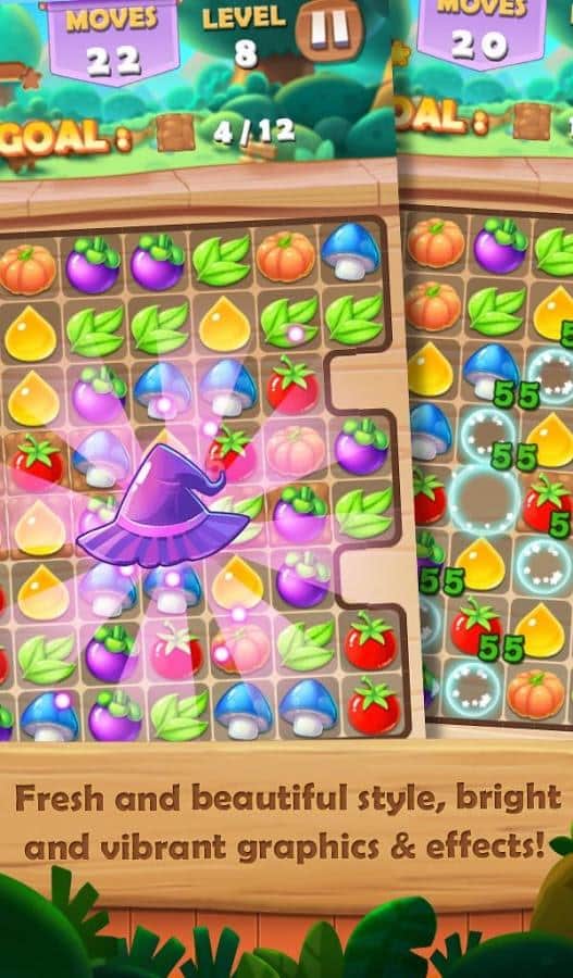 Büyülü Çiftlik – meyveler, sebzeler ve otlardan oluşan sıralar oluşturun ve böylece genç cadının çiftlikten hasat toplamasına yardımcı olun. Bu oyunda büyülü bir çiftliğe gideceksiniz, hasat toplama zamanı geldi. Nesneleri yer değiştirerek sıralar oluşturun ve onları ekrandan kaldırın. Oyun boyunca çeşitli mekanlarda seyahat edin ve 400'den fazla seviyeyi geçerek nesneleri sıralar halinde toplayın ve alanı temizleyin. Meyve ve sebzelerden mümkün olan en fazla zinciri oluşturun ve zor seviyeleri geçmenizde yardımcı olacak harika bonuslar kazanın. Çeşitli görevleri yerine getirin ve bu oyunda kendi rekorunuzu belirleyin.