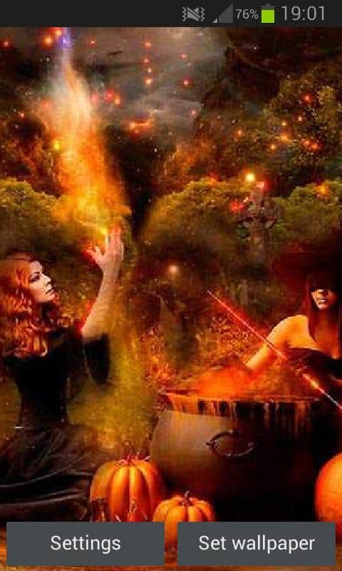 Büyülü Cadılar Bayramı Ücretsiz Canlı Duvar Kağıdı – Cadılar Bayramı öncesinde sizi mutlu edecek Android için canlı duvar kağıtları. Dünya genelinde en popüler bayramlardan biri olan Cadılar Bayramı'nda çeşitli kostümler giyilip, geçerken insanları korkutmak adettendir. Eğer bu bayramı seviyor ve onu özel bir heyecanla bekliyorsanız, bu duvar kağıtları size pek çok keyif verecektir. Telefonunuza veya tabletinize canlı duvar kağıtlarını yüklediğinizde, bal kabağı, hayalet ve öteki dünya büyüsü ile çevrili ormanda büyü yapan kızıl saçlı cadıları izleyebileceksiniz. Ayarlara girip, isteğinize göre animasyon hızını ve çeşitli efektleri ayarlayabilirsiniz.