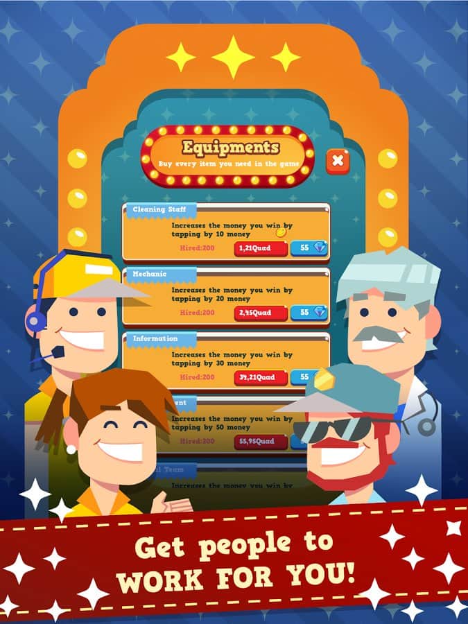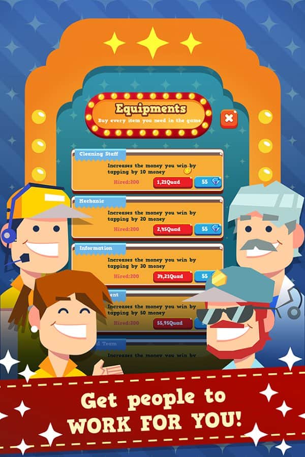 Sihirli Park Tıklayıcı - Android için bir oyun, burada bir eğlence parkının sahibi olacaksınız. Bu oyundaki ana göreviniz boş bir alanda büyük bir eğlence parkı inşa etmek ve içine mümkün olduğunca fazla ziyaretçi çekmektir. Telefonunuzun veya tabletinizin ekranına mümkün olduğunca sık tıklayın ve yeni bir atraksiyon, döner dolap veya salıncak satın almak için kullanabileceğiniz parayı kazanın. Parkınızı harika ve çeşitli döner dolaplarla doldurun ve parkınıza bilet satışı ile para kazanın. Atraksiyonlarınızı sürekli olarak geliştirin ve ziyaretçilere sıkıcı gelmemesi için yenilerini satın alın. Kendinize özgü bir park yaratın ve oyundaki en iyi sonuçlar için arkadaşlarınızla yarışın.
