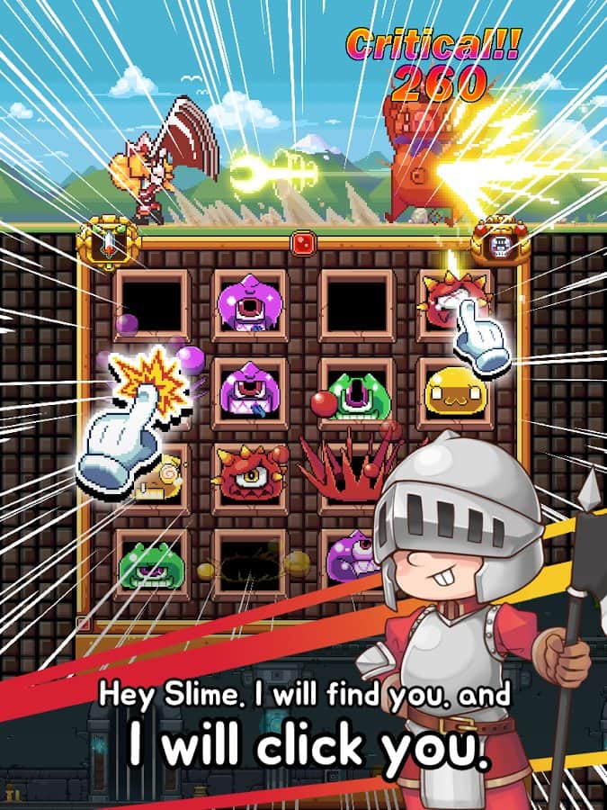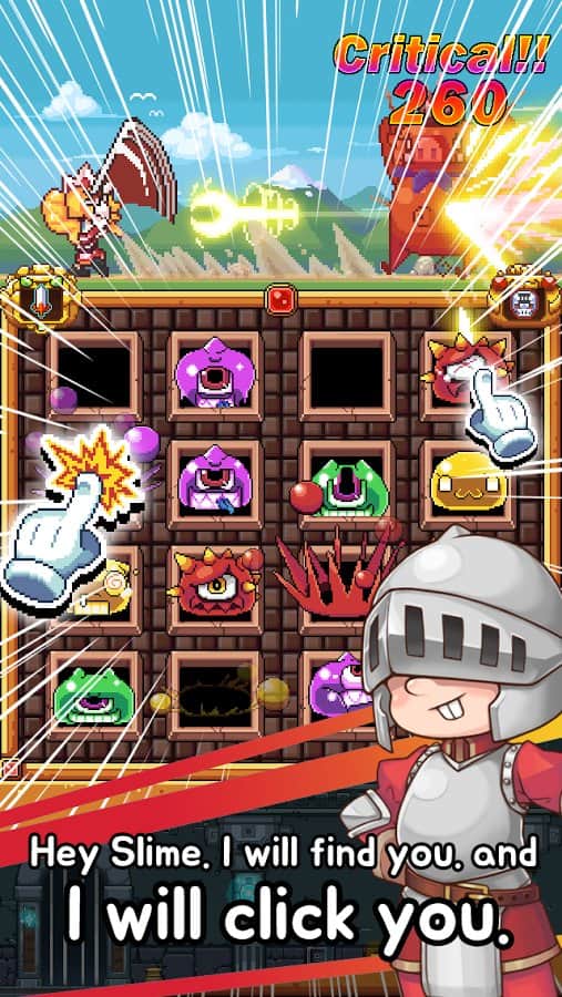Maid & Slime – cesur bir hizmetçiyi yönetin ve tüm düşmanları ve sümükleri yok edin. Bu oyunda tüm dünyayı sümükler ele geçirdi ve insanlar üzerinde zihin kontrolü öğrenip tüm kahramanları kaçırdılar. Artık mutfak bıçağıyla silahlanmış cesur bir hizmetçiyi yönetmeniz gerekiyor ve arkadaşlarını aramak için yola çıkıyorsunuz. Canavarlara, deliklerinden çıkmak istediklerinde zamanında tıklayın ve tüm canavarlara ve sümüklerine karşı savaşın, kırmızı canavarlara dokunmadan. Kahramana tüm düşmanları yok etmesine ve kahramanları bulmasına yardım edin. Oyun boyunca faydalı güçlendirmeler ve eşyalar toplayın ve kahramanınız için çeşitli zırhlar deneyin. Oyunda 100'den fazla seviye, 20 tür canavar ve 3 oyun modu bulunmaktadır.