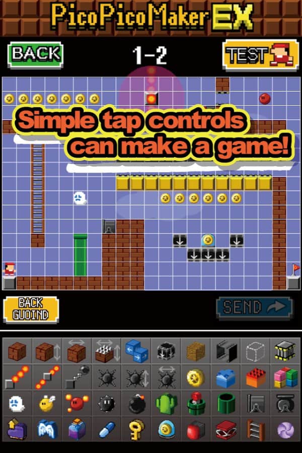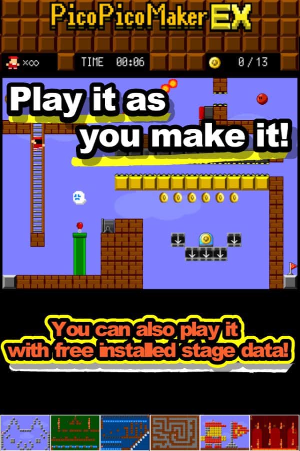 Harekete Geç! PicoPicoMaker – Android için bir piksel oyunu, burada çeşitli seviyeler oluşturacak ve bunları geçeceksiniz. Bu oyunda tüm hayal gücünüzü ve zeka yeteneğinizi sergilemeniz gerekiyor; çeşitli bloklar kullanarak sayısız seviyeler ve oyun aşamaları oluşturmalısınız. Sayısız unsuru uygulayın ve benzersiz seviyeleri kendiniz inşa edin. Oyun alanına nesneleri sürükleyin ve gerekli yerlere yerleştirin. Seviyelerinizi arkadaşlarınıza gösterin ve diğer oyuncular tarafından oluşturulan yenilerini arayın. Oyunda birkaç oyun modu, harika bir seviye editörü ve inşa etmek için 30 unsur bulunmaktadır.