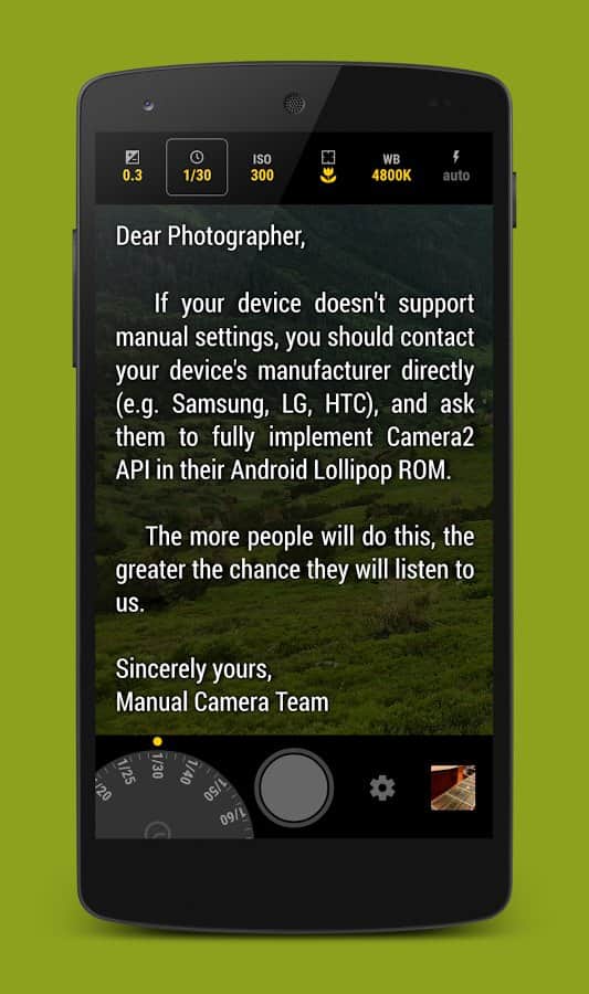 Manuel Kamera - Aslında fotoğraflarınızın kalitesini artıran basit bir uygulama. Standart uygulamalardan farkı, burada biraz daha gelişmiş işlevsellik bulmanızdır. Birkaç odaklama modu ve fotoğraf kalitesinin hızlı bir şekilde değiştirilmesi. Fotoğraflarınızı daha kaliteli hale getirmek için renk dengesini değiştirebilir ve nihai fotoğraf sonucunu gerçek zamanlı olarak görüntüleyebilirsiniz. Ayrıca, burada kamera deklanşör sesi ve diğerleri gibi birkaç sıradan ayar da bulunmaktadır.