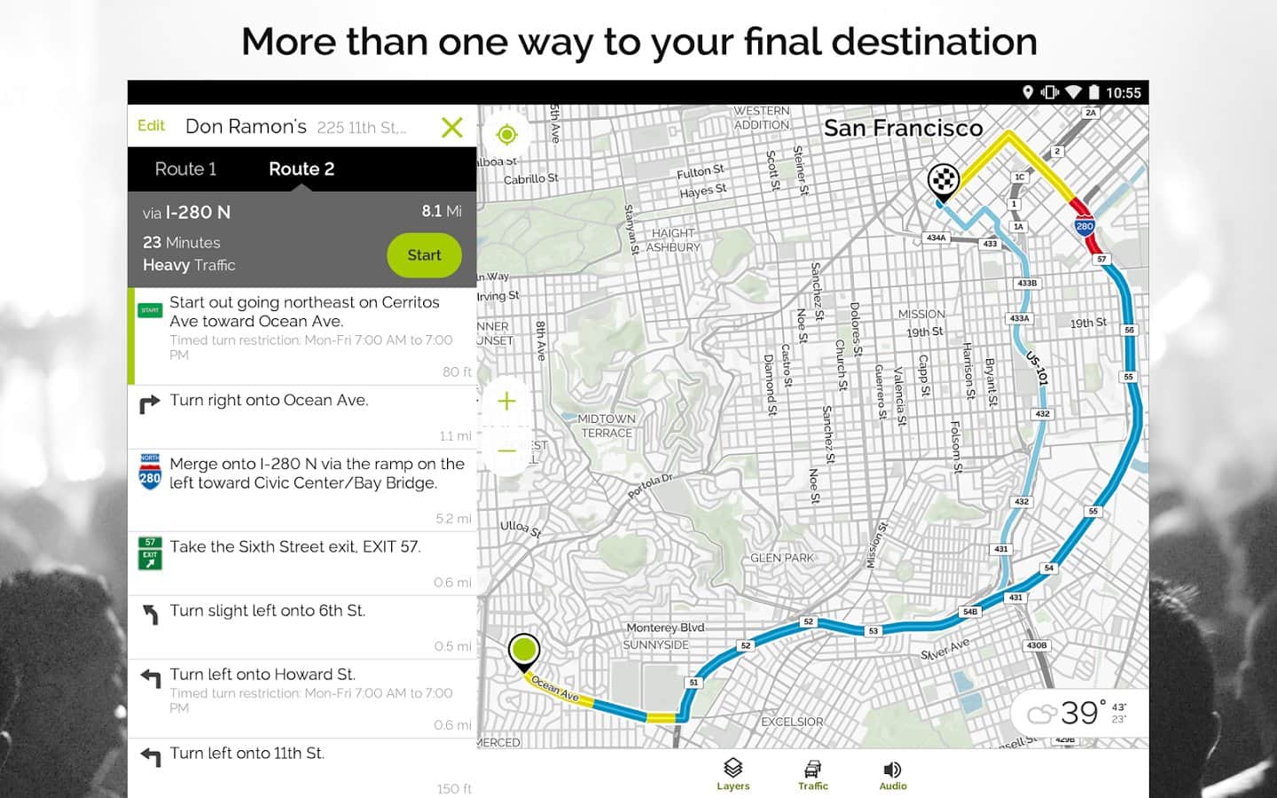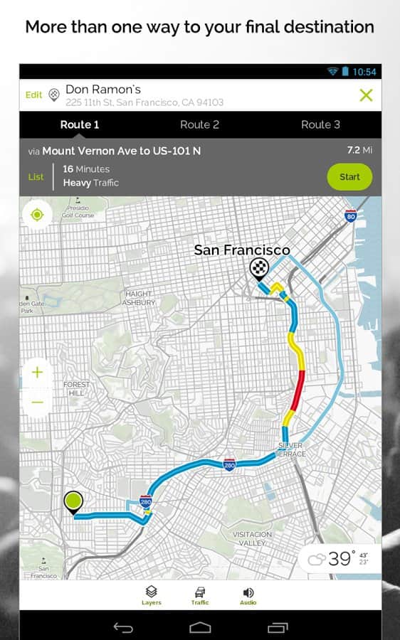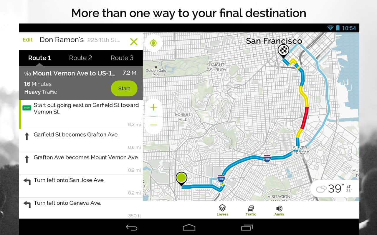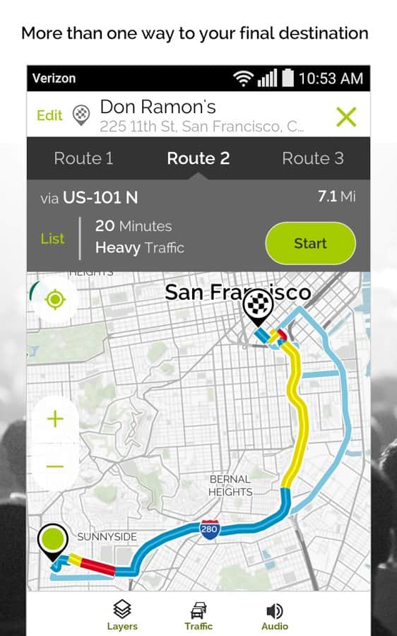 MapQuest – Android için kullanışlı bir navigasyon programıdır, OSM ile mükemmel çalışır ve hem ülke içinde hem de ülkeler arasında rota oluşturma konusunda kolayca başa çıkabilir. Varış noktasına giden yolda gerekli POI'leri eklemek oldukça kolaydır. Ücretli yollar, otoyollar, feribot geçişleri, stabilize yollar, mevsimsel kapalı yollar, sınır geçişleri gibi noktaları içeren mükemmel bir yönlendirme ve manevra ayarı vardır; ayrıca hızlı, kısa bir rota ve yaya rotası da mevcuttur. Sesli kontrol imkanı vardır, ancak şu anda sadece İngilizce olarak. Ayrıca çok, çok daha fazlası. İyi yolculuklar ve unutulmaz deneyimler!
