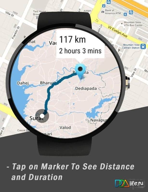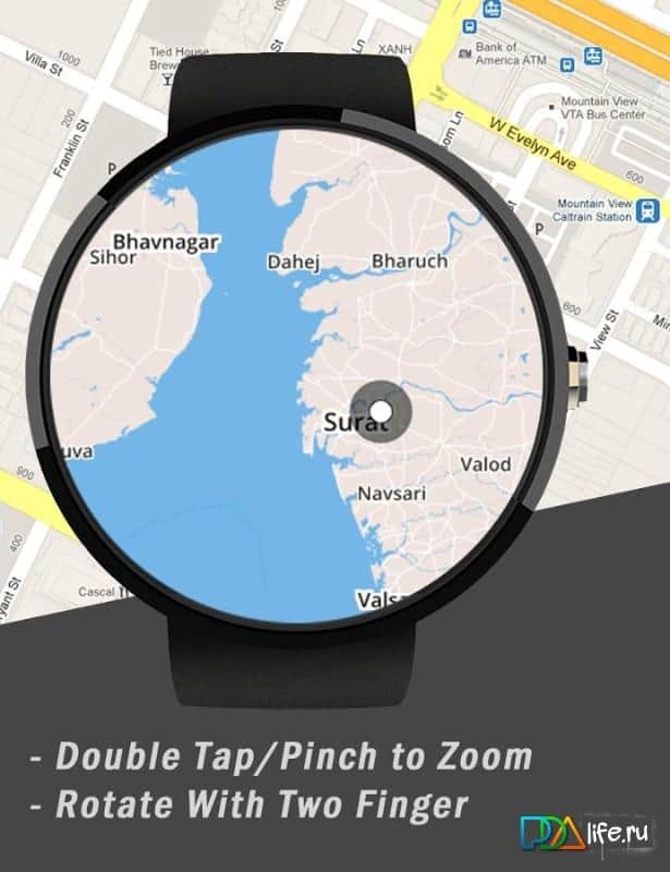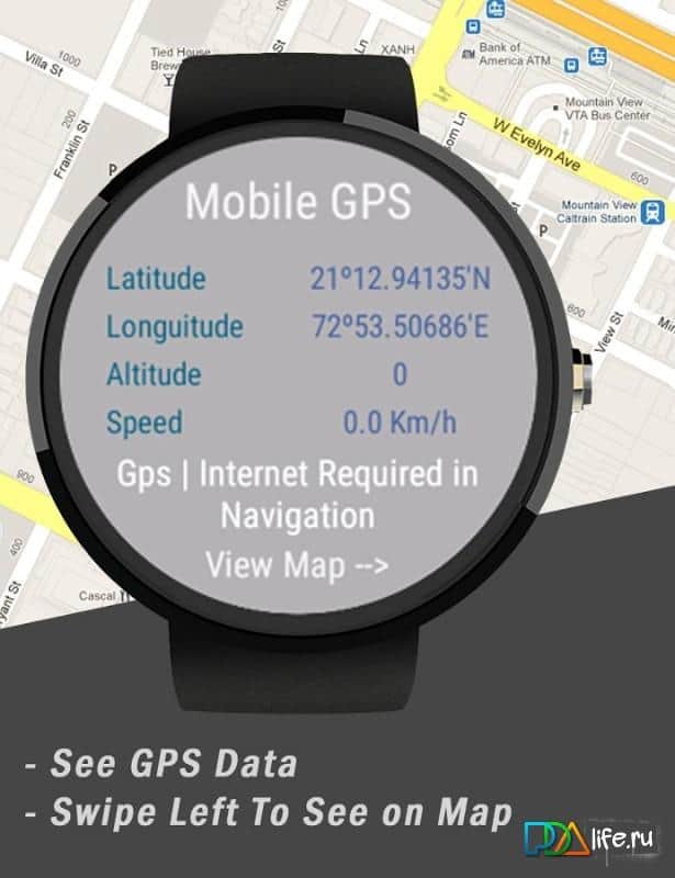 Bu sorunun iyi bir çözümü, navigatörü akıllı telefondan bilekliğe, yani Android Wear saatine taşımaktır. Sunulan uygulama, tam donanımlı navigatörlerle aynı seviyededir: haritayı görüntülemenize, koordinatlarınızı ve hareket hızınızı gösterir, belirli bir noktaya olan mesafeyi hesaplar ve bu mesafeyi kat etmek için harcanacak zamanı tahmin eder. Ekrandaki haritayı alışılmış parmak hareketleriyle ölçeklendirebilir ve döndürebilirsiniz.