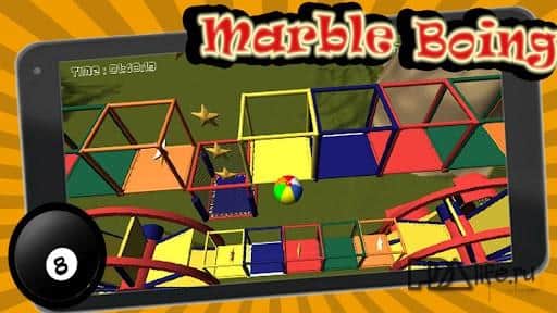 Mermer Boing 3D - Android için eğlenceli bir arcade bulmaca oyunudur. Karşınızda 18 seviye - çeşitli, ayrı ayrı tasarlanmış, düşünülmüş ve çok zor! Göreviniz, belirlenen süre içinde topu labirentten nihai noktaya yönlendirmek, labirentin dışına düşmeden ve tüm yıldızları toplamak. Görev kolay değil, seviyeler kendileri de zor. Sinirlerinizi dayanıklılıkta, ellerinizi ise çeviklik ve ustalıkta test edin. Kontrol, ivmeölçer ile sağlanmaktadır. Oyun, düşünmeyi sevenler için hoş bir deneyim olacak, çünkü kolay çözüm yolları olmayacak!