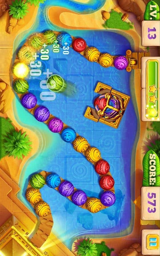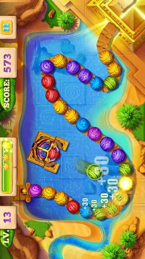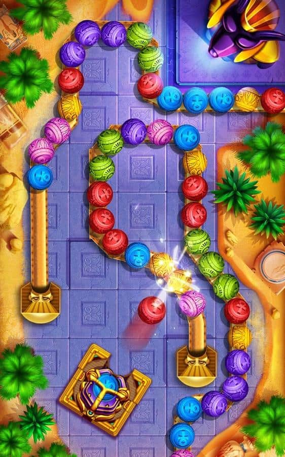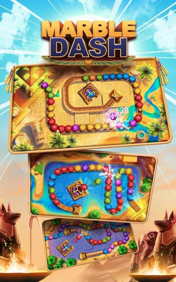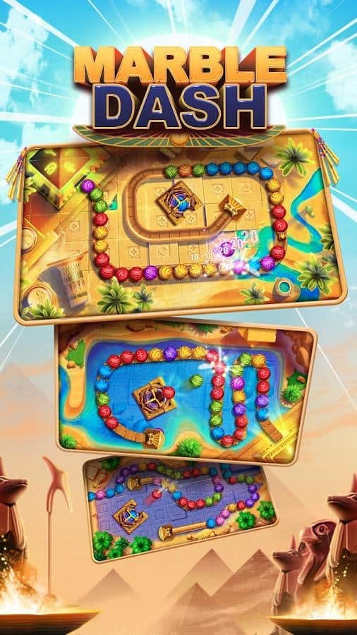 Mermer Dash – ünlü Zuma oyununa benzeyen, Android için eğlenceli bir oyundur. Bu oyunda, Mısır piramitlerinin antik dünyasına gireceksiniz, burada ana görevlerinizden biri, hareket eden zincire renkli toplar atmak olacaktır. Aynı renkten üç veya daha fazla topu bir araya getirerek patlatın ve puan kazanın. Hareket eden top zincirini, mağaraya ulaşmadan daha hızlı bir şekilde yok etmeye çalışın. Hareket eden zinciri durdurmak, yavaşlatmak veya geri çevirmek sizin elinizde. Renkli topları top mermisinden ateşleyin ve ödül olarak bonuslar ve güçlendirmeler kazanın; bu da top zincirini dondurmanıza olanak tanıyacaktır. Oyunda 96'dan fazla seviye, basit kontroller ve çok sayıda bonus bulunmaktadır.