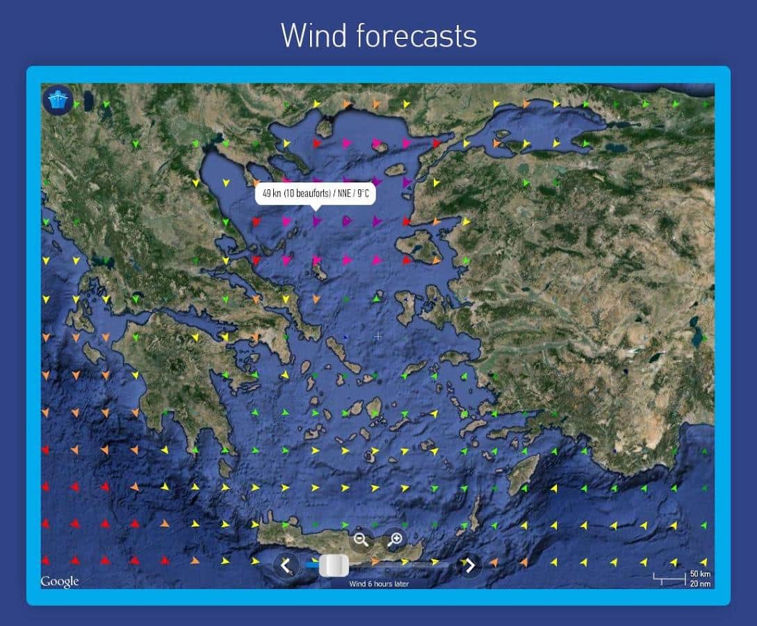 - Haritada mevcut rüzgar hızını ve 48 saatlik rüzgar tahminlerini görüntüleme.