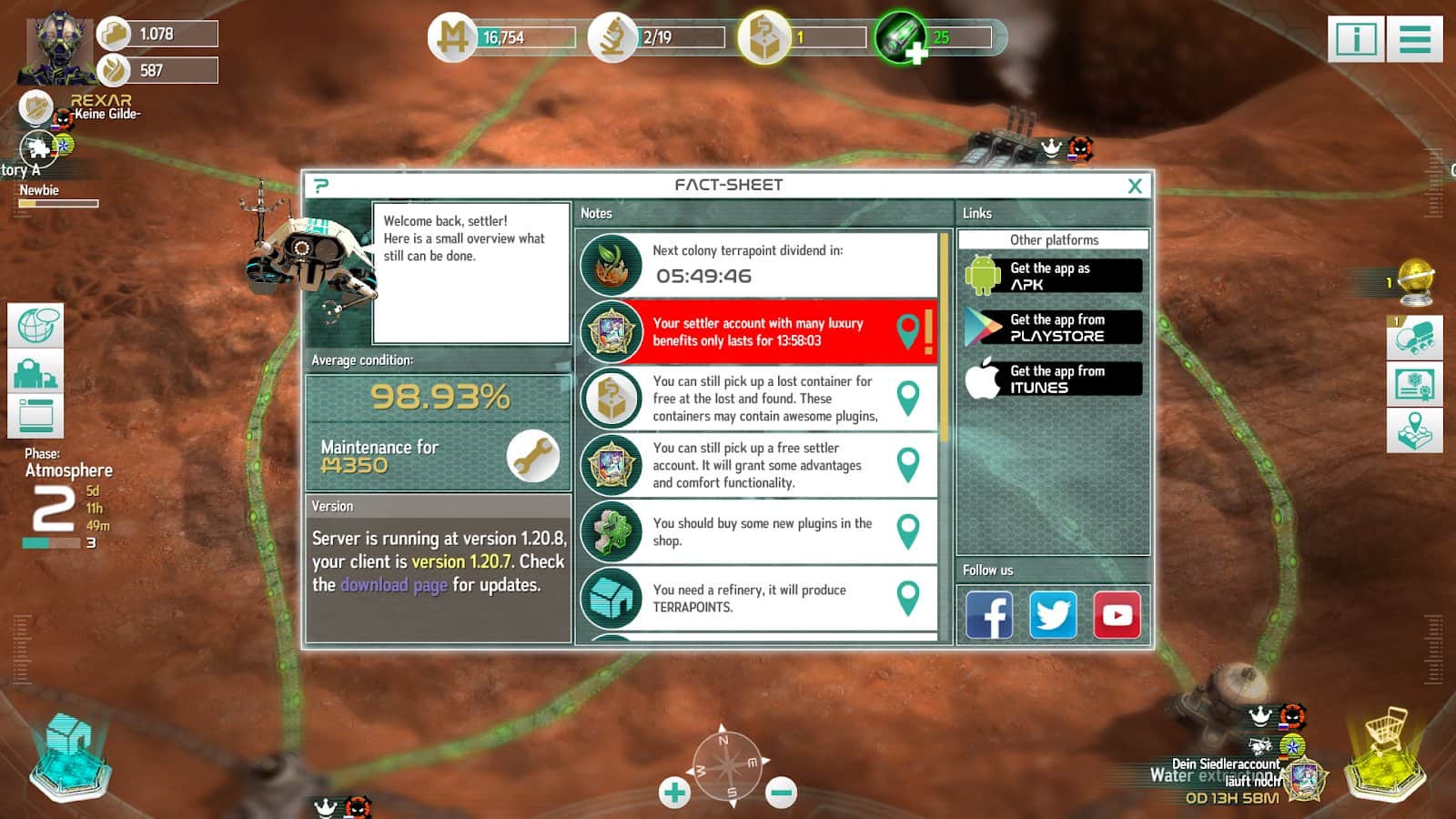 Mars oyunu – android için ekonomik bir simülatör, burada diğer oyuncularla birlikte Mars gezegenini kolonileştireceksiniz. Bu oyunda ana göreviniz kendi koloninizi inşa etmek ve onu ihtiyaç duyduğu her şeyle sağlamak olacak. Koloninizi besleyecek ve terrafoming süreçlerini geliştirecek taşıma araçlarını kullanın. Büyüyen ve genişleyen koloniler, kırmızı gezegenin iklimini doğrudan etkileyecek ve burada alışılmadık hava koşullarını gözlemleyebileceksiniz. Oyundaki önemli bir görev, en hızlı ve yeni taşıma aracını bulmak olacak – bu, size zorlu görevleri çözmede yardımcı olacak ve koloninizi yeni bir seviyeye taşıyacaktır.