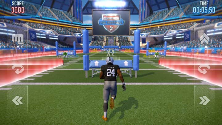 Marshawn Lynch Pro Football – Android için harika bir spor oyunu, burada Amerikan futbolu oynayacaksınız. Deneyimli bir hücum oyuncusunu kontrol altına alın ve engelleri aşarak tüm sahayı geçin veya yok edin. Yolunuzda rakip takımın savunucularıyla da karşılaşacaksınız, onları geçin ve rakip kaleye güvenli bir yol açın. Bir golü ardı ardına atın ve oyunu tamamlama süresi rekoru kırın. Oyun, sizi tamamen oyuna sokacak yüksek çözünürlüklü gerçekçi grafikleri ve oyuncuların mükemmel fiziği ve animasyonları ile oyuncuları memnun edecek. Bu oyunu istediğiniz her boş zamanda oynayın ve heyecan verici oyun deneyiminin tadını çıkarın.