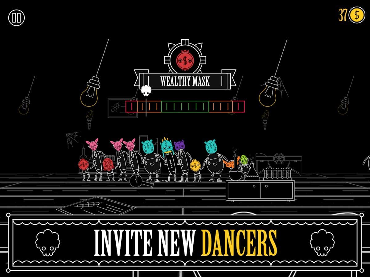 Masky – Android için bir müzik oyunu, burada amacınız dinamik müzik eşliğinde dengeyi korumaktır. Bu oyunda inanılmaz bir kostümlü baloda bulunacaksınız, burada tüm misafirler çeşitli maskelerle giyinmiş olacak. Bu oyunda melodi çalmaya başladığında, amacınız müzik eşliğinde dans etmek ve dengeyi korumaktır. Her yeni seviyede dansa başka katılımcılar katılacak ve amacınız onların hareketlerini dikkate alarak dengeyi sağlamak, düşmemek için olacaktır. Oyunda mümkün olduğunca fazla oyun katılımcısını açın ve dans hızını artırın. Oyunda 10 benzersiz dünya, 10 eşsiz müzik parçası ve çok sayıda çeşitli maske bulunmaktadır.