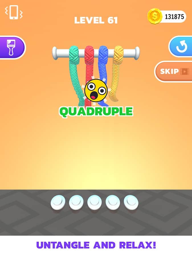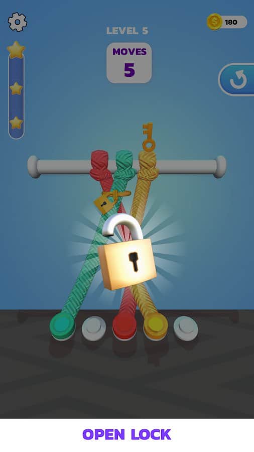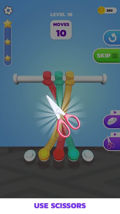 3D Düğüm Çözme Ustası - kendinize zor bir meydan okuma bırakın: 50'den fazla seviyedeki tüm düğümleri çözün! Her seviyenin zorluğu artıyor, ancak oynamak daha da ilginç hale geliyor. Ekstra yetenekler, geçişler veya baştan başlama kullanmadan düğümleri çözmeyi deneyin. Sadece deneyim kazanmakla kalmayın, aynı zamanda yıldızlar ve daha sonra bir şeyler satın alabileceğiniz altın paralar da toplayın. Ödüllerinizi üç katına çıkarın veya almanız gereken kadarını tam olarak alın. Rahat bir ortamın tadını çıkarın ve oyunu kendi ritminizde geçmeye çalışın.