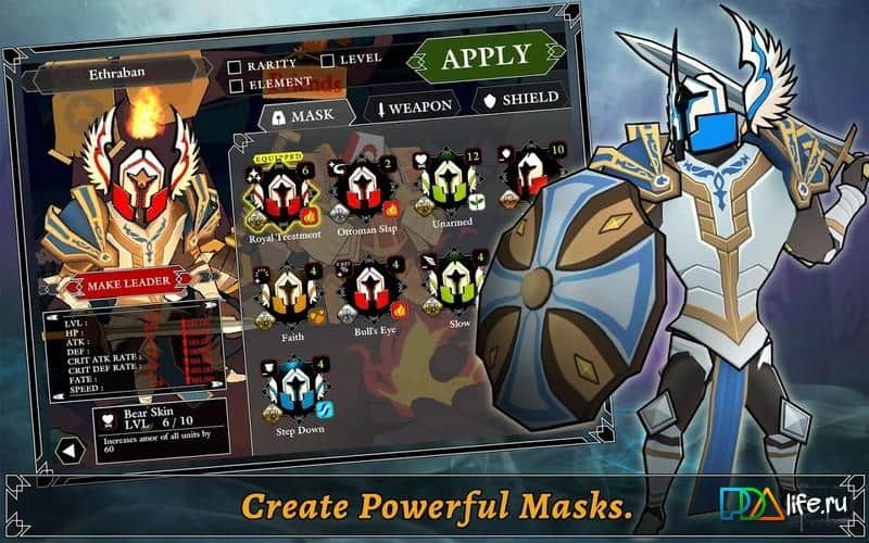 Maskelerin Ustaları – uzak Ivren eyaletinde, tanrılar, halklara kötü güçlerle savaşmalarında yardım etmeye karar verdiler. Artık bu tür bir birliklerin başındasınız, canavarlara karşı savaşın, taktiksel becerilerinizi geliştirin ve yolunuza çıkan tüm düşmanları mutlaka alt edin. Yeni bölgeleri keşfedin, kadim sihirli maskelerin yapımına dair tarifleri öğrenin ve bunları kahramanlarınızda kullanarak yeteneklerini artırın veya yenilerini açın. Oyun, sıra tabanlı savaşlarla bir RPG'dir. Oynamak için internet erişimi gereklidir.