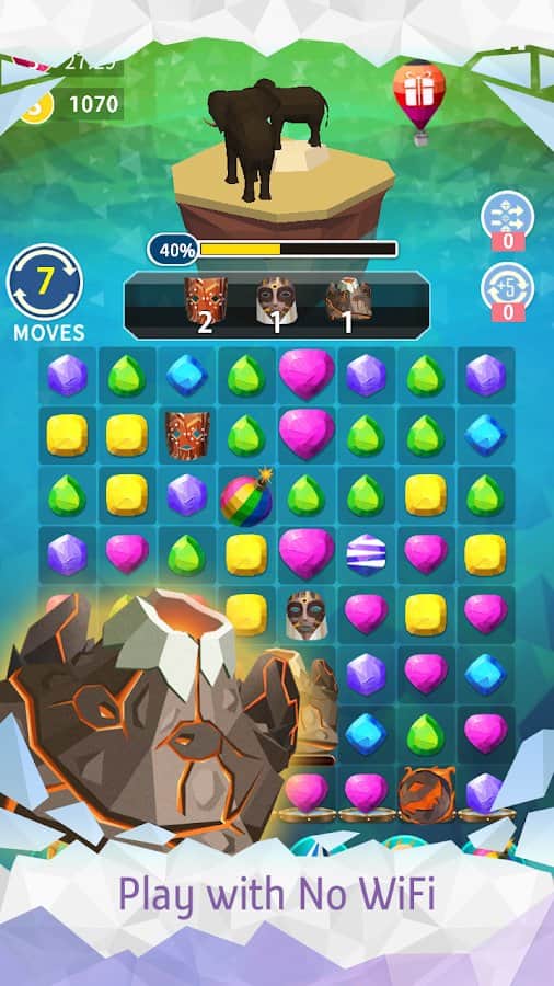 MATCH EARTH - Mücevherler Çağı - Android için bir bulmaca oyunu, burada farklı gezegen köşelerinde seyahat edecek ve üç veya daha fazla değerli taş ile sıralar oluşturacaksınız. Renkleri aynı olan taşları sıraya koyun ve etrafınızdaki dünyayı süsleyin ve geliştirin. Sayısız görev ve toplama görevini yerine getirin ve ödül olarak bonuslar ve güçlendirmeler kazanın. Bu oyunda, çeşitli parçaları birleştirerek bir gezegeni yeniden inşa etme fırsatı bulacaksınız. Üç veya daha fazla taş ile zincirler oluşturun ve görevlerinizi daha hızlı tamamlamanızı sağlayacak kombinasyon vuruşları yapın.