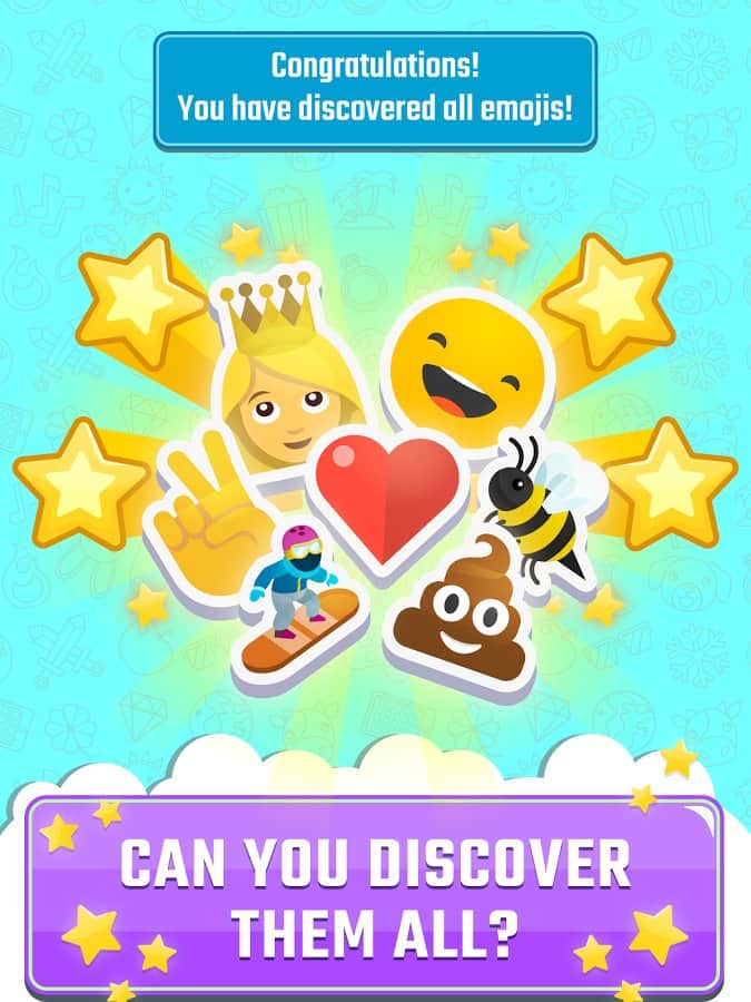 Emojiyi Eşleştir - Birleştir ve Yeni Emojileri Keşfet! – Android için bir oyun, burada çeşitli emojileri toplayacaksınız. Bu oyundaki ana göreviniz, insan duygularını harika ve tanınabilir resimlerde toplamaktır. Farklı emojiler insan duygularını simgeler ve bunları doğru tahmin etmelisiniz ki koleksiyonunuzu oluşturabilesiniz. Telefonunuzun veya tabletinizin ekranına dokunun ve aynı duyguları arayın, bunlardan benzersiz emojiler oluşturun. Yeni duygu türlerini keşfedin ve heyecan verici oyun sürecinin tadını çıkarın. Oyunda toplamda 200'den fazla emoji bulunmaktadır, hepsini toplayın ve hoş grafiklerin tadını çıkarın.