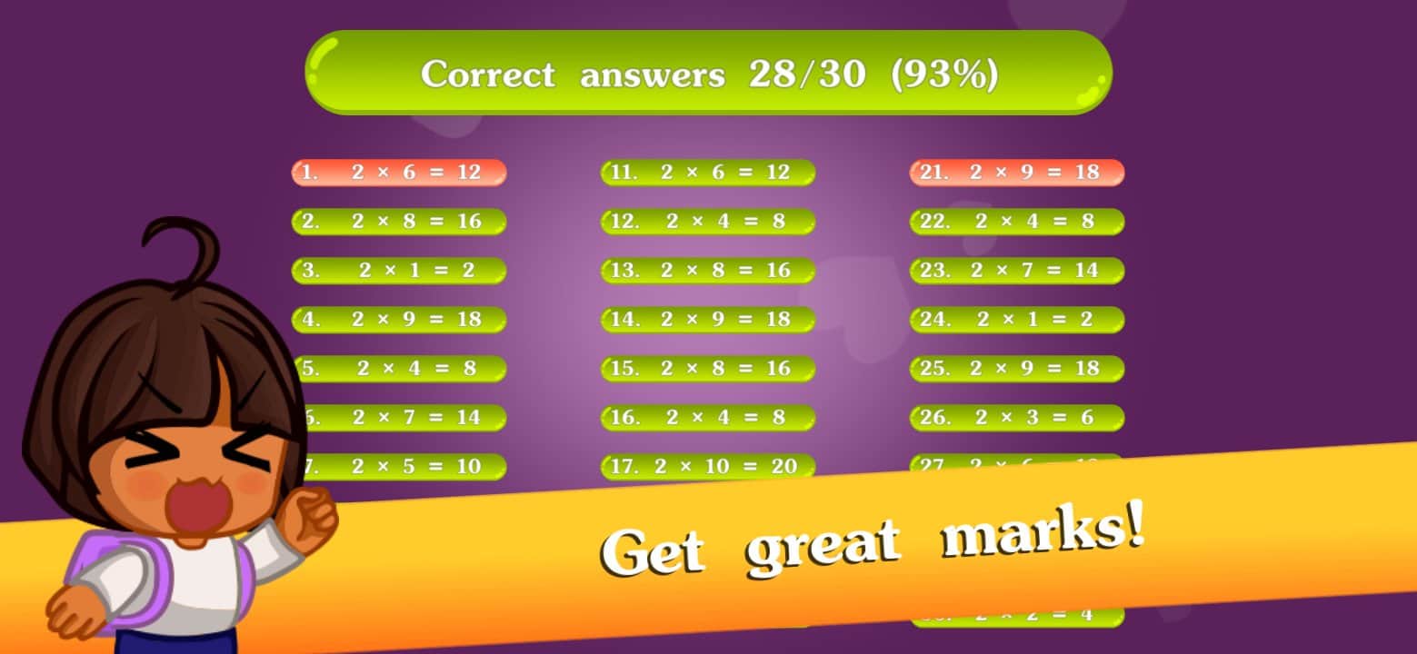 Matematik Oyunları - Çarpanlar Tablosu (PRO) - Çocuğunuzun matematik problemlerine çözüm bulmasını çok daha ilginç hale getirin! Her gün pratik yaparak çocuk, toplama, çıkarma, çarpma ve hatta bölme işlemlerini hızlı bir şekilde öğrenir. Uygulamada birçok uygun mod geliştirilmiştir, bunları istediğiniz sırayla değiştirebilirsiniz: yeni materyal öğrenme, etkili pratik, son sınavlar, hazır seviyeleri geçme ve sınırlı zamanla oyun oynama. Çocuğunuzun yanlış cevapladığı soruları her zaman kontrol edebileceğinizi belirtmek gerekir.