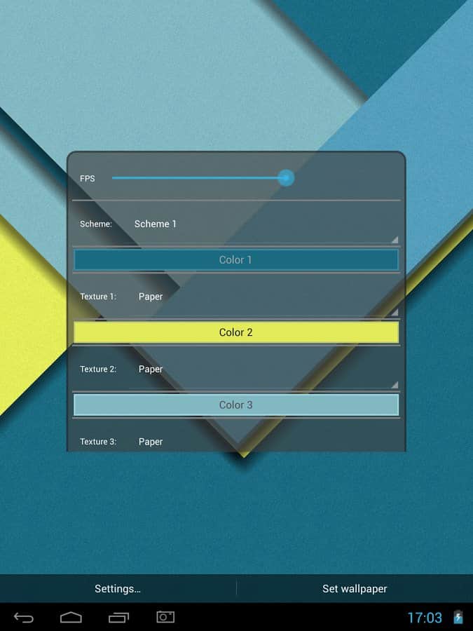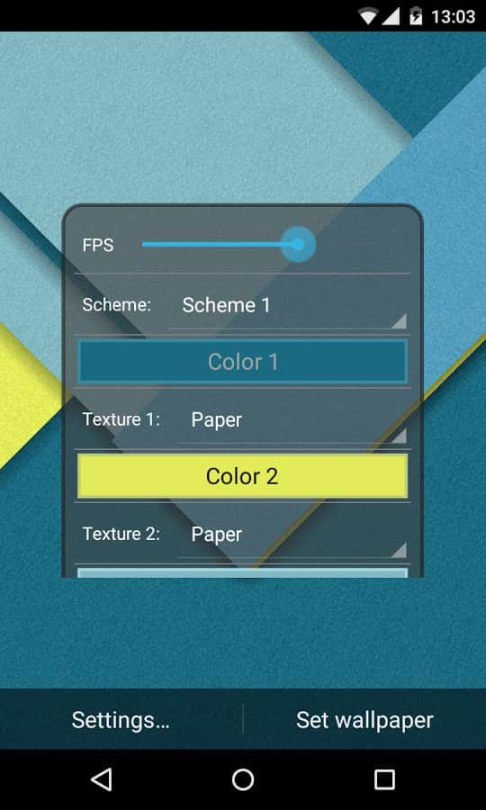 Material Style Tiles LWP – Android telefonlar ve tabletler için soyut canlı duvar kağıtları. Bu canlı duvar kağıtlarını yüklediğinizde, ekranınızda farklı renk ve dokuya sahip çeşitli karolar bulacaksınız. Bu duvar kağıtları 3D paralaks efektine sahip ve seçtiğiniz ayarlara bağlı olarak rengini değiştiriyor. Farklı dokular ve renklerin en iyi kombinasyonunu bulun ve telefonunuzu benzersiz hale getirin. Bu duvar kağıtları, harika bir kombinasyon oluşturmak için muazzam sayıda malzeme ve renk sunarak sizi memnun edecek. Herhangi bir karonun rengini ve malzemesini değiştirin ve gölgeleri ayarlayın. Duvar kağıtları yatay modu destekler ve çok az bellek kaplar.