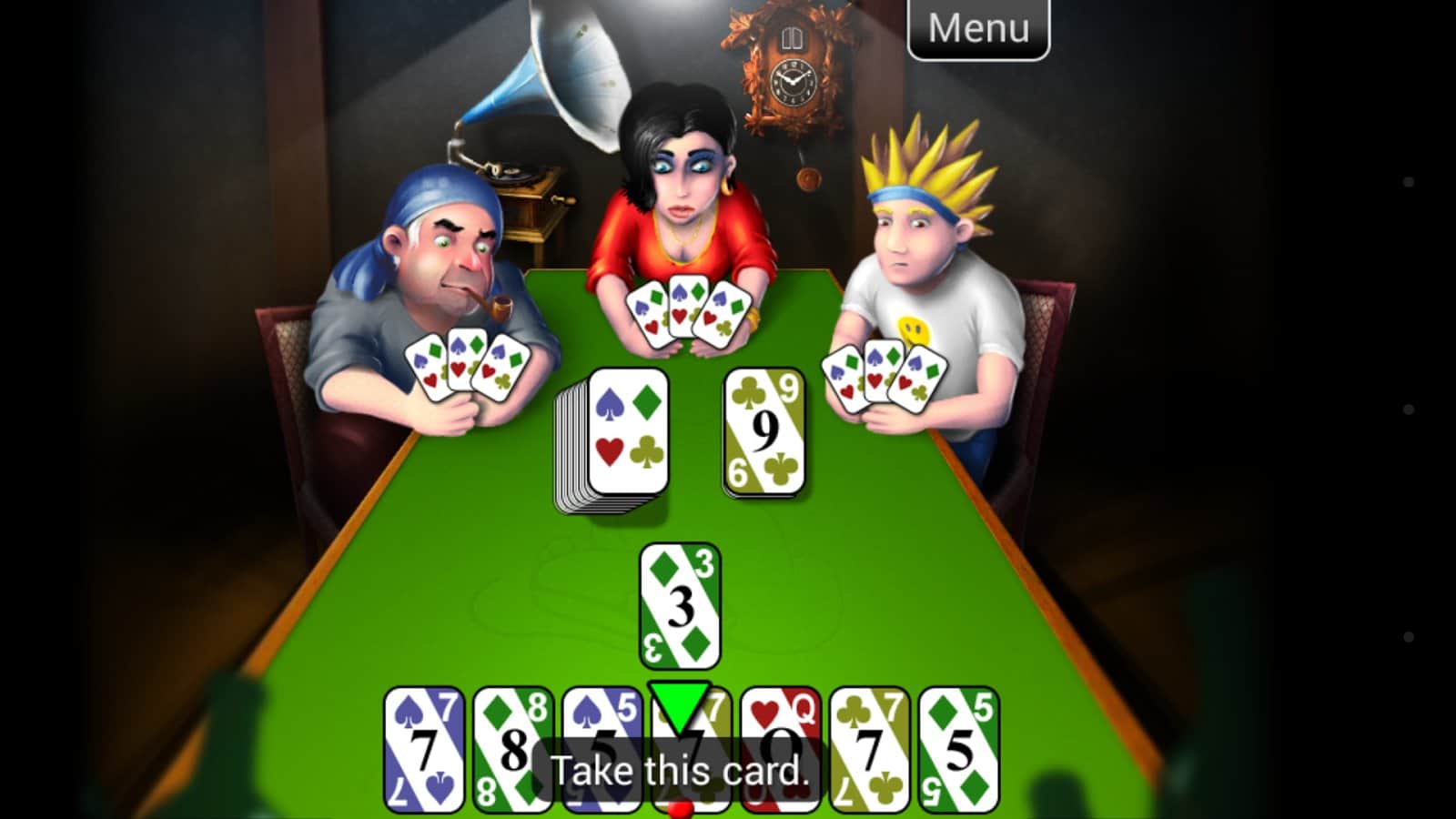 Mau Mau – Android için klasik bir kart oyunu, üç oyuncuyla aynı anda oynama imkanı sunar. Bu oyunda, kartlarını göremediğiniz bilgisayar rakiplerine karşı oynayacaksınız. Bu oyunun menüsünde kaç oyuncuyla oynayacağınızı ve onların nasıl olacağını seçebilirsiniz. Ana hedefiniz tüm kartlarınızı zamanında atmak olacak. Oyunun başında her oyuncuya yedi kart dağıtılır, kartlar türlerine göre yerleştirilir ve desteden çekilir. Rakiplerinizi alt etmek için tüm mantıksal düşüncenizi kullanarak ilk olarak tüm kartlarınızdan kurtulmalısınız.