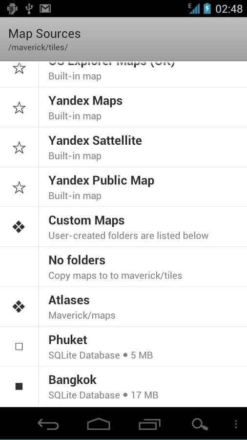 Maverick Pro - Bu uygulama, doğa severler veya bilinmeyen bir şehirde yürüyüş yapmayı sevenler için mükemmel bir seçimdir. İnternet bağlantısı olmadan haritaları kullanın. Uygulamadaki tüm haritalar otomatik olarak çevrimdışı kullanıma hazır hale getirilir. Harita yüklemek için Mobile Atlas Creator'ı veya diğer formatlardan harita dönüştürmek için MAPC2MAPC'yi kullanın. Ayrıca, birkaç küresel ve bölgesel çevrimiçi harita da mevcuttur.