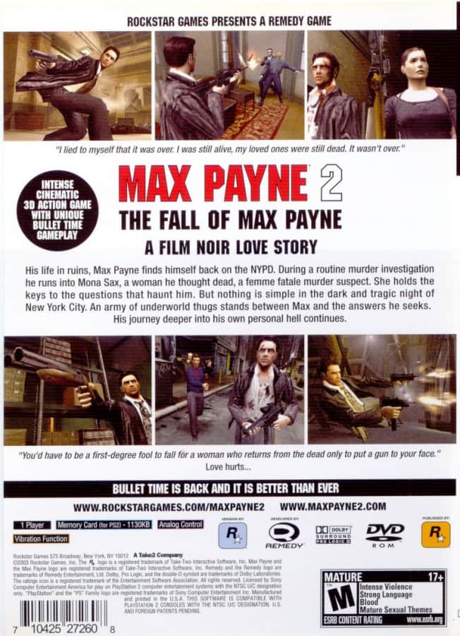 Max Payne 2 - Kimseye güvenilmez, hatta gördüğünüz şeyler size gösterilen şeyler değilse bile. Gizemli olaylar New York'ta gelişiyor, dedektif Max Payne bir cinayet mahalline geldiğinde, beklenmedik bir şekilde ölü şüpheli Mona Sax'ı görüyor. Hiçbir şey boşuna değildir, bu yüzden aslında onun ifadeleri sayesinde gerçek gerçeğe ulaşmak mümkündür, hatta başka biri onu dikkatlice saklamaya karar verse bile. Değerli bilgiler elde etmek için oldukça fazla çaba sarf etmek gerekecek, hatta gerçek haydutların birçok uşağıyla savaşmak zorunda kalabilirsiniz.