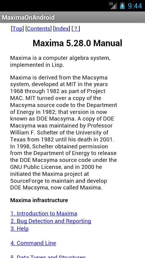 Maxima Android'da - ilk olarak bu uygulama PC için oluşturulmuştu, ancak ustalar onu Android'e taşıdılar ve hiç de eşdeğerine kıyasla geri kalmıyor. Temelde bu, hesaplama işlemleri, diferansiyasyon, entegrasyon ve daha birçok şeyi gerçekleştiren bir programdır. Basit ve anlaşılır arayüzü ve ayrıca bu uygulamanın benzersiz işlevselliği, onu türünün en iyilerinden biri haline getiriyor ve oldukça faydalı kılıyor.