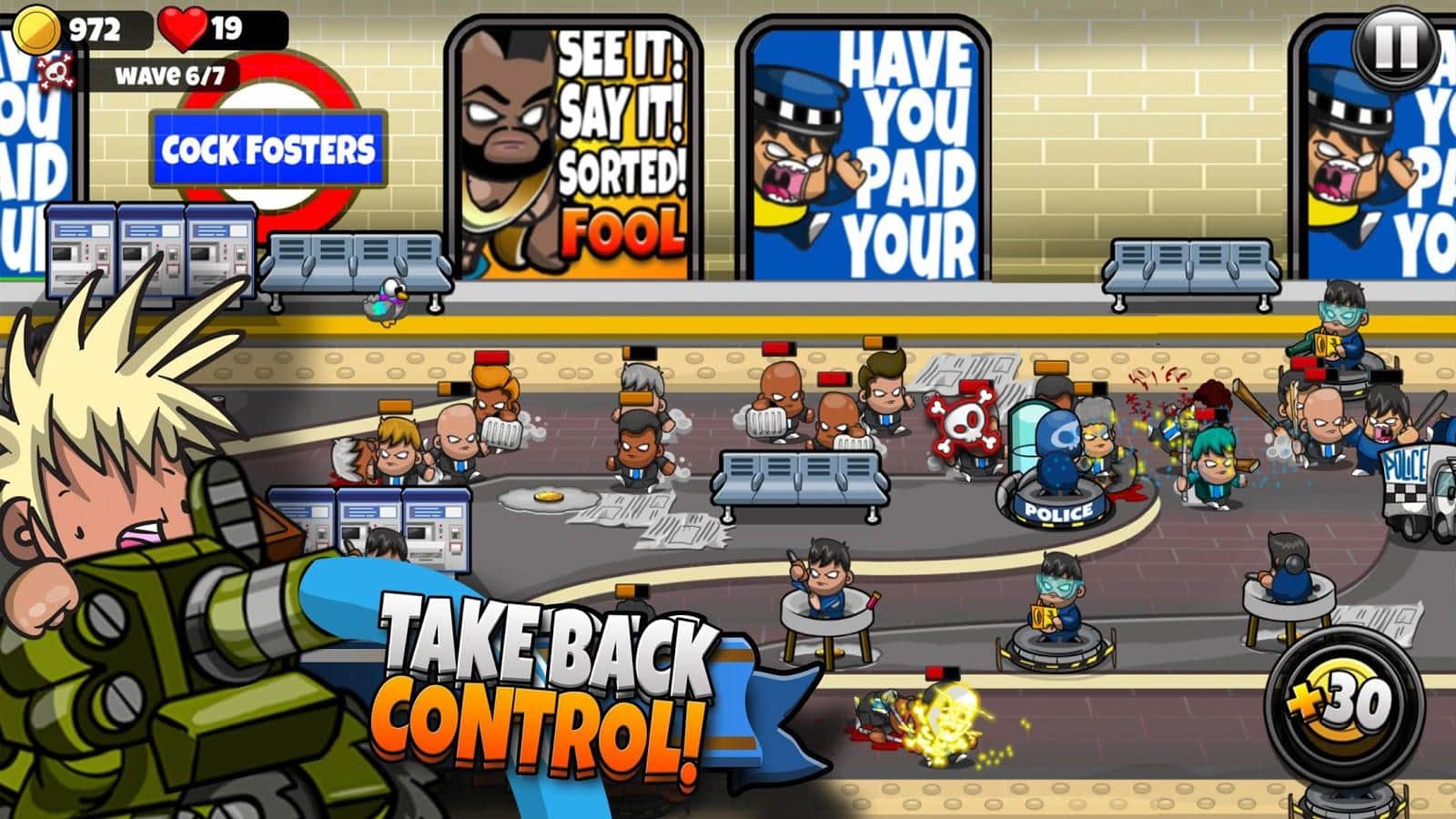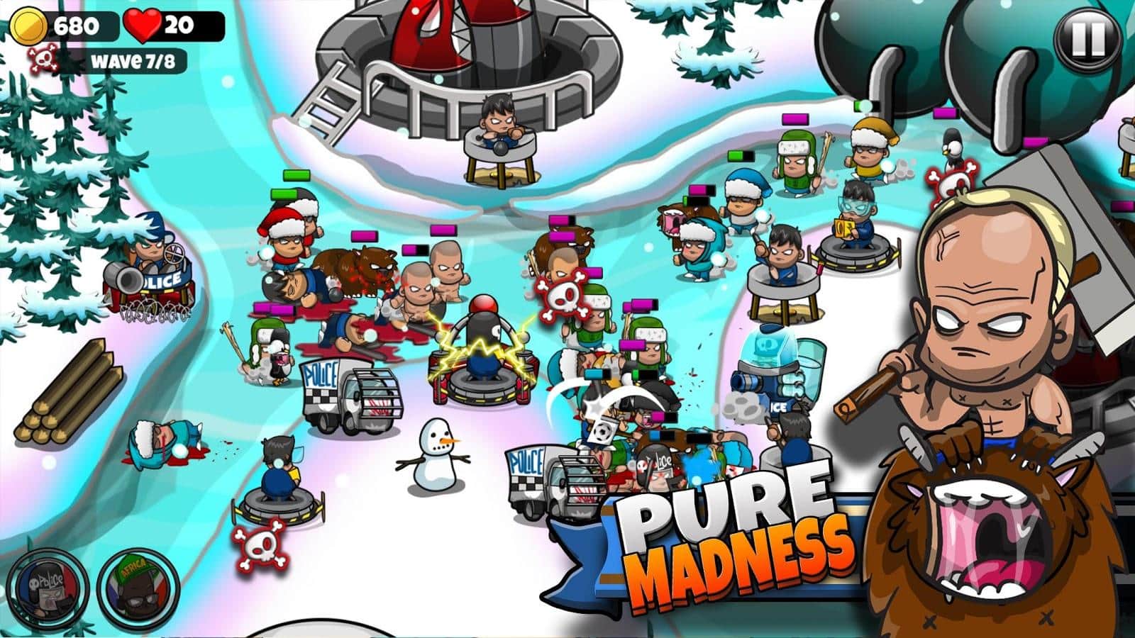 BÜYÜKŞEHİR ÇILGINLIĞI – Android için eğlenceli bir strateji oyunu, çizgi film tarzı grafikleriyle. Bu oyunda, göstericilerden koruyacağınız çeşitli dünyalarda bir yolculuğa çıkacaksınız. Oyunda kuleler olarak polisler yer alacak ve üzerinize göstericiler saldıracak. Onları gözyaşı gazı ve coplarla dağıtın, ayrıca çeşitli teknikler kullanın. Her seferinde oyun daha zor ve daha ilginç hale gelecek. Polislerinizi geliştirin ve onlara çeşitli silahlar ve savunma türleri uygulayarak güçlendirin. Oyunun mekanları her seviyede değişecek, bazen şehirde savaşacak, bazen kırsal alana veya deniz kenarına geçeceksiniz. İyi tamamlanmış seviyeler için bonuslar ve ödüller kazanın ve oyunda mükemmel sonuçlar elde etmeye çalışın.
