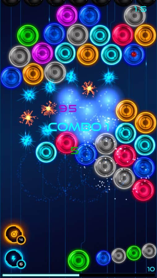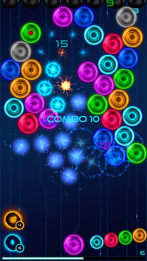 MB2: parlayan neon baloncuklar – renkli topları atacağınız eğlenceli bir Android oyunu. Bu neon grafiğiyle yapılmış oyun, gerçekten de refleks hızınızı ve dikkatinizi test edecek. Ekranın üst kısmındaki toplara nişan alarak çok renkli topları atın ve üç veya daha fazla aynı renkteki topu patlatmak için bir grup oluşturmaya çalışın, böylece beklediğiniz puanları kazanmış olacaksınız. Ana amacınız, tüm oyun alanını toplardan temizlemek ve bunu en az hamle ile gerçekleştirmektir. Bu oyunu oynayın ve arkadaşlarınızla yarışarak maksimum puanı kazanmaya çalışın.