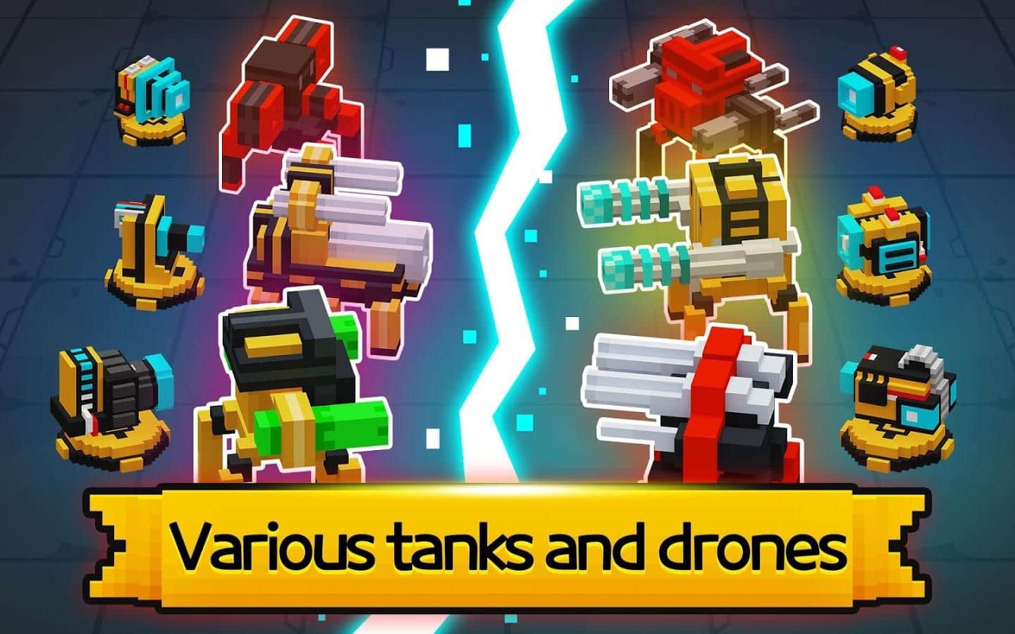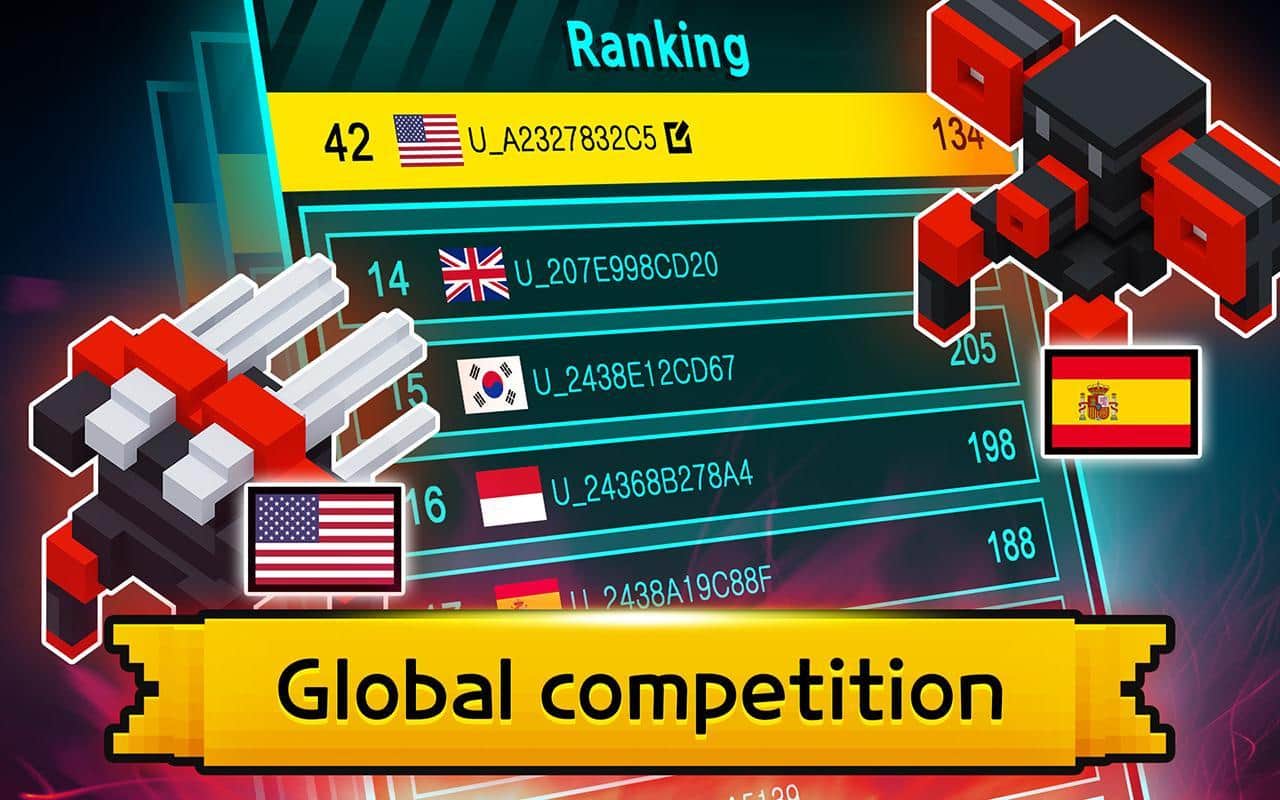 Mecha Tank Arenası - akıllı telefonunuzda tank savaşları sevenler için dinamik bir arcade aksiyon oyunudur. Renkli piksel grafiğiyle kendi savaş aracınızı oluşturun. Oyundaki tanklar küçük oyuncaklar veya Lego yapımına benziyor, ama bu onları daha az korkutucu ve yıkıcı yapmıyor. Devasa bir geliştirme ve modernizasyon sistemi, her türlü hasara dayanabilecek bir mekanizma oluşturmanıza olanak tanır. Tankınızı özelleştirin, ona eşsizlik katın ve savaş arenasına çıkın. Arenada rakiplerin yanı sıra çeşitli tuzaklar ve engeller de belirecek, dikkatli olun. En güçlüleri alt edin ve puan tablosunda birinci sırayı kapın.