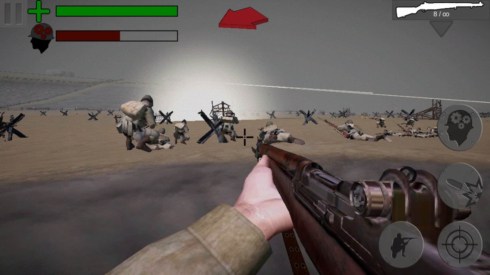 Cesaret Madalyası D-Günü II. Dünya Savaşı – II. Dünya Savaşı dönemine geri dönün ve işgal altındaki Fransa için savaşın. Bu oyunda, silah alması gereken birkaç askerin rolünü üstleneceksiniz ve Fransa'ya saldıran Alman ordusunu yok etmelisiniz. Vatanınıza olan görevinizi yerine getirin ve onu düşmanlardan koruyun. Fransa'nın kurtuluşu için birçok müttefikle birlikte savaşın ve her savaşçının psikolojik sağlık sayacını takip edin. Doğrudan savaş alanlarına gidin ve dinamik ve ölümcül savaşların yanı sıra gerçekçi görsel efektlerin tadını çıkarın. Bugüne kadar yapılmış en modern II. Dünya Savaşı oyununu oynayın ve düşmanı yenin.